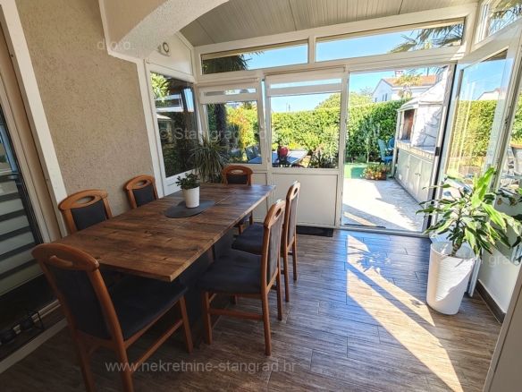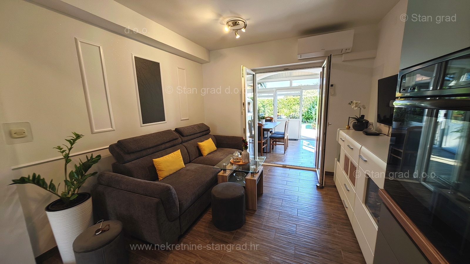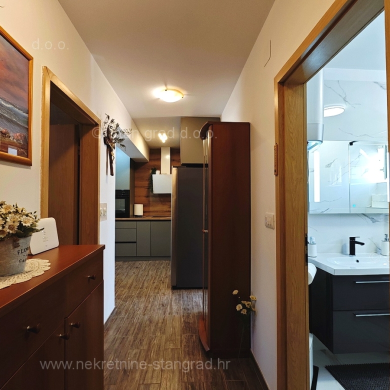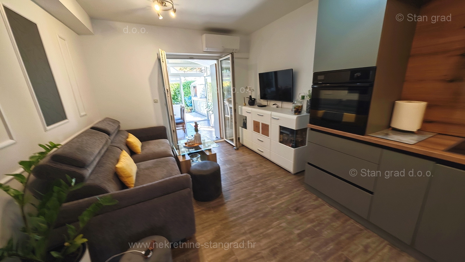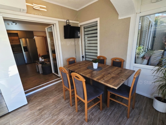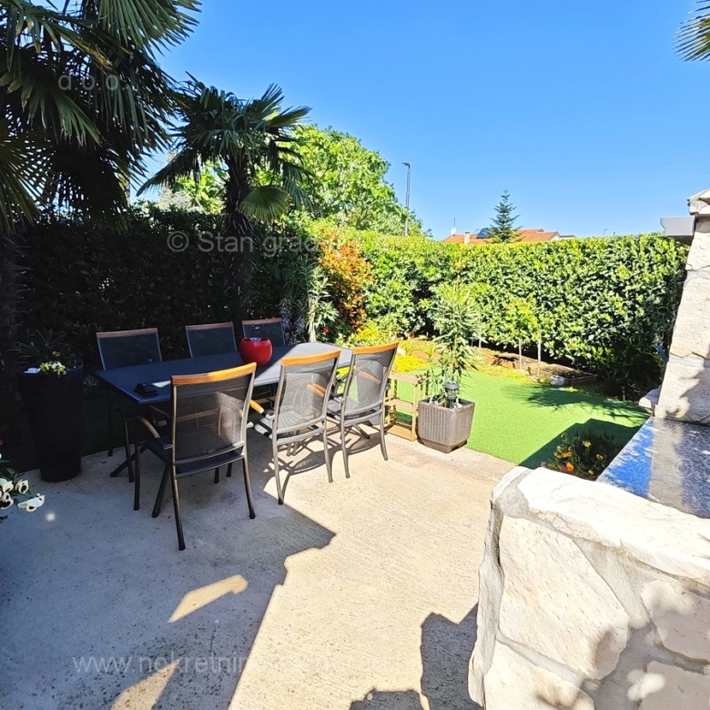 From the diverse offer of real estate, we highlight a traditionally built apartment in the well-known northern Adriatic Mediterranean destination, the island of Krk. This property is located in an excellent location, close to the sea and the beach and not far from the center of Malinska. Considering the property by type, this is a spacious one-story apartment. Within a very beautiful building, the apartment is located on the ground floor. The apartment covers a total area of approximately 61 m2. This area is occupied by the entrance hall, living room and kitchen, 2 bedrooms, bathroom and closed loggia. The interior of the property has been renovated and is fully equipped with all the necessary technical devices and quality furniture. It is certainly worth noting that the ownership of the described apartment also includes a well-organized garden with an equipped grill area, a summer kitchen and a storage room. The owner of the apartment will have two parking spaces at his disposal. Excellent location, close to the center and the sea. The apartment in question is owned by a physical obligation and upon transfer of ownership is subject to the calculation of real estate sales tax in the amount of 3%. The real estate seller guarantees a quick transfer of ownership rights and proper ownership and technical documentation. It will be our pleasure to receive you and serve you on the island of Krk. If you put your trust in us, the friendly team of agents and staff of the Stan Grad Immobilien office will be happy to help you transfer the ownership of the property and the utility bill to your name.