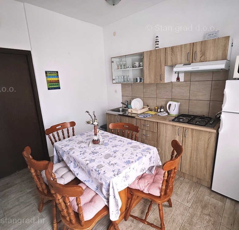 In the excellent real estate offer of the Stan Grad Immobilien agency, you will find a coastal apartment on the attractive northern Adriatic tourist location of the island of Krk. This property is located in an excellent location, close to the sea and the beach and not far from the town of Malinska. Looking at the property type, this is a rarely available, smaller, one-story apartment with an excellent layout. In a very good and quality building, the apartment is located on the ground floor. The apartment has a total area of approximately 56 m2. This area includes the living room and kitchen, 2 bedrooms, bathroom, loggia, terrace. The maintained interior of the property is equipped with a set of quality technical equipment and pieces of good furniture. It is certainly worth noting that the described apartment has a piece of neat yard. This apartment has a parking space for parking two cars. In addition to the previously mentioned properties, this apartment has a view of the landscaped surroundings and the natural landscape. The apartment in question is owned by a physical obligation and upon transfer of ownership is subject to the calculation of real estate sales tax in the amount of 3%. The owner of this apartment guarantees a quick and easy transfer of ownership to the buyer of the property. Contact us in person or by phone, we will try to answer all your questions. If you put your trust in us, the friendly team of agents and staff of the Stan Grad Immobilien office will be happy to help you transfer property ownership and utility bills to your name.