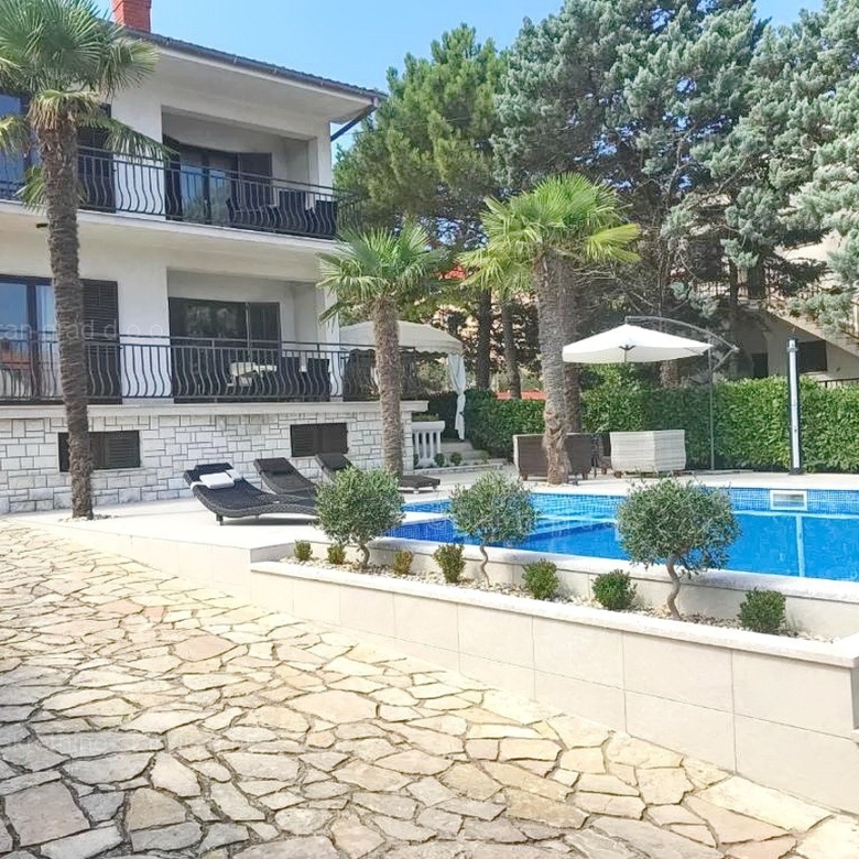 From the offer of excellent properties with our agency in the northern Adriatic, a modern house for tourism built in the sought-after Croatian and Kvarner coastal region of the island of Krk stands out. This desirable house is located in a very good location near the center of the famous tourist destination of Malinska. Structurally, this is a detached two-story house. The very beautiful building is built on 3 usable floors (basement and two floors of approximately 60 m2). The house consists of 2 separate apartments. The house occupies a total area of 155 m2. This area includes two loggias and two summer kitchens in the basement. There is one two-bedroom apartment on each floor. The excellently maintained interior of the property is fully furnished with quality furniture and all necessary technical equipment. Added value to this entire property is given by the garden, enriched with a 30 m2 seawater swimming pool and a sunbathing area and a space for enjoyment. The spacious garden of the described property has been arranged for comfortable parking for several vehicles. In addition to the above, it is important to note that the house has a very beautiful open view of the sea. The owner of this property is a natural person and upon transfer of ownership, the buyer is charged a 3% property transfer tax. The owner guarantees complete and proper technical and ownership documentation and a simple transfer of the property to the buyer. We will be happy to accept the role of your partner in the search and secure acquisition of a property in Kvarner. The agents of the Stan Grad Immobilien office will be happy to assist you with administrative matters regarding the transfer of ownership and the property account.