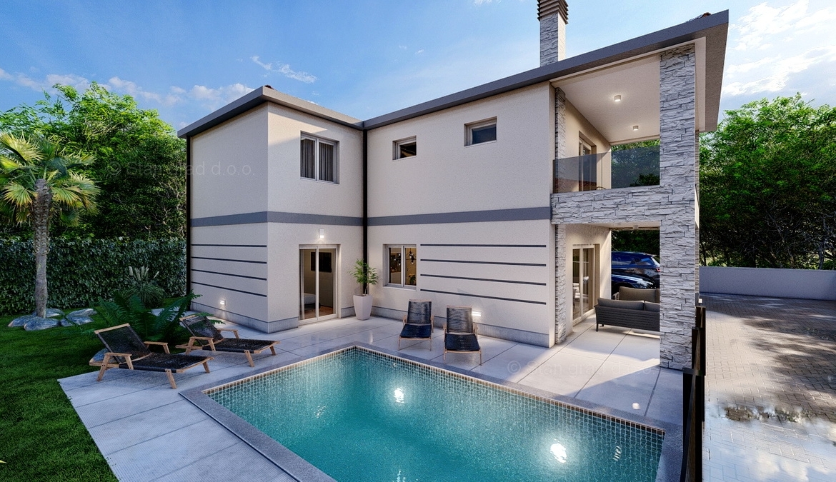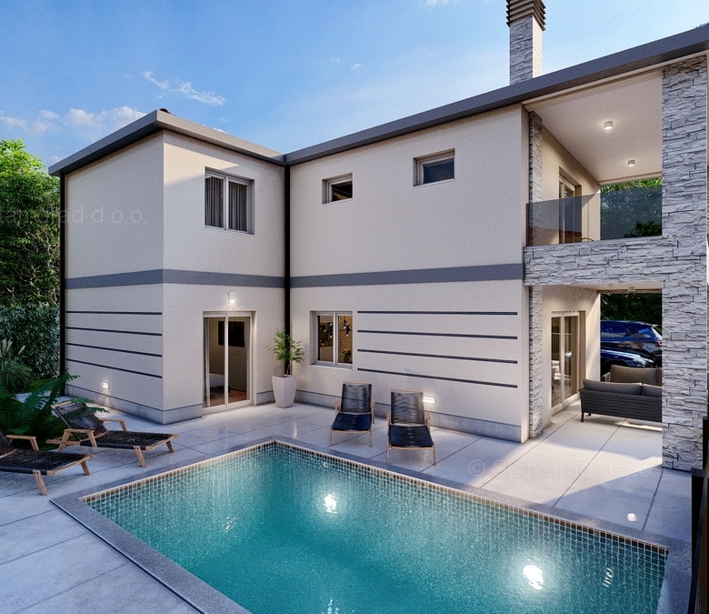 The Stan Grad Immobilien agency in Kvarner has for sale an exceptional Mediterranean urban house built according to a modern project on the developed and attractive northern Adriatic area, the island of Krk. This house is located in the beautiful coastal town of Malinska in a prime location not far from the sea. According to the type of building, the building can be categorized as a single-story house. The modern built house consists of a space distributed over a total of 2 floors. The total area of this house is 170 m2. This area includes the living room and kitchen, 3 bedrooms, 3 bathrooms and a terrace. The special charm of this property is given by the exceptionally landscaped garden, which includes a swimming pool and a sunbathing area. Ownership of this property provides two parking spaces. In addition to the previous characteristics, it is important to say that the house has a beautiful view of the sea and the coast. This house is the property of a natural person and the transfer of its ownership is subject to real estate transfer tax in the amount of 3%. The seller of the house guarantees proper ownership documentation and a quick transfer of property ownership. You are warmly welcome to our golden island of Krk and to our Kvarner branch. Agent Stan Grad Immobilien will help you transfer property ownership and utility bills.