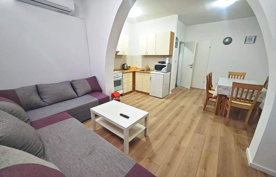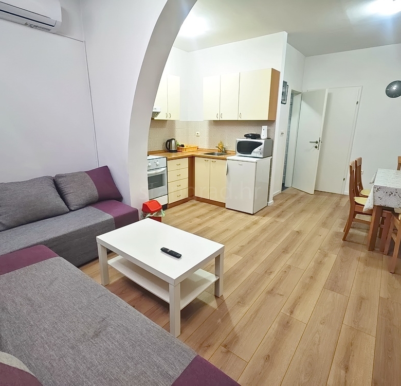 Situated on the ground floor of a well-maintained residential building, the property has a total area of 39 m². It consists of an entrance hall, a living room with kitchen and dining area, one bedroom, and a bathroom. The interior has been well maintained and is equipped with quality appliances and tasteful furniture, ready for immediate use without additional investment.