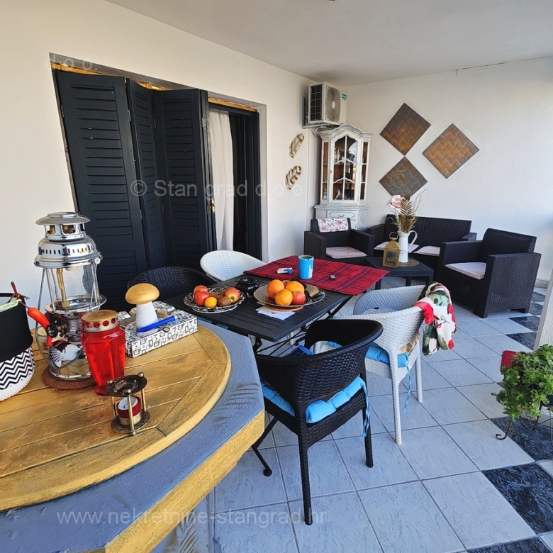 From the real estate offer of the Stan Grad Immobilien agency, a romantic apartment in an attractive tourist area of the island of Krk has been selected. The available property is located in a very attractive location in the immediate vicinity of the center of Malinska, and offers a comfortable walk to the beach. According to the type of property, this is a medium-sized one-story apartment. In a very well-built building, the apartment is positioned on the ground floor. The area of this apartment is 83 m2 in total. This area includes a living room and kitchen, two bedrooms, a hallway, a bathroom and a covered terrace. The interior of the property is particularly well maintained and fully equipped with the necessary technical devices and very high-quality furniture. It should also be noted that the ownership of this apartment includes a very nicely decorated and refined garden. In the courtyard of the described apartment, one parking space is provided in the ownership as well as in the accompanying garage. In addition to the above, it can also be noted that the apartment is oriented in such a way that it offers a beautiful view of the lovely coastal landscape and the surrounding area of the settlement. The apartment in question is owned by a physical obligation and is subject to a real estate transfer tax of 3% upon transfer of ownership. The owner of the apartment guarantees a quick transfer of the right to dispose of the property to the buyer. Contact us with confidence at our branch address on the island of Krk and we will be your partner for a safe purchase of a property in Kvarner. In addition to presenting the property and its legal status and conducting negotiations with the property seller, our expert team will assist the buyer in transferring ownership of the apartment and transferring the electricity, water and utility bills to their name.