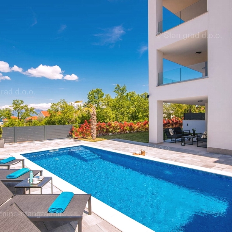 Malinska, luxurious apartment on the ground floor with a pool near the sea!