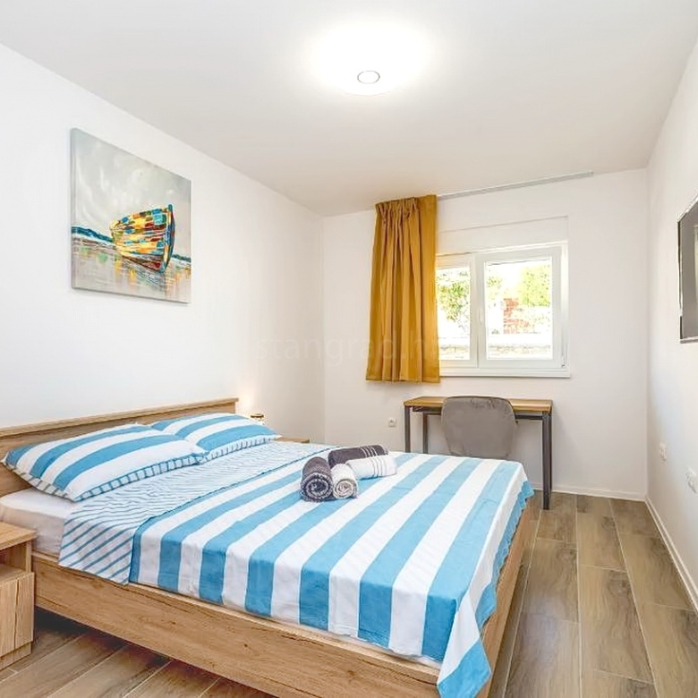 The house comes with a beautifully landscaped and well-maintained yard of 250 m². The spacious outdoor area includes a designated space for convenient vehicle parking. In addition to all previously mentioned features, the house offers a lovely view of the sea and the coastline.