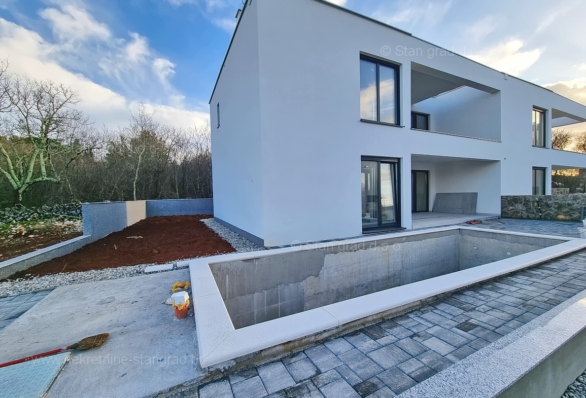 From the excellent offer of real estate in the Stan Grad Immobilien agency in the developed and advanced Kvarner, a very beautiful house in the high-quality and desirable coastal Adriatic destination, the island of Krk, stands out. This attractive property is located in an outstanding location close to the center of the famous tourist town of Malinska. Structurally, this is a two-story house. The modernly designed house includes useful space on a total of 2 floors. The property covers a total area of 143 m2. This area on the ground floor includes the entrance hall, toilet, bedroom, kitchen with dining room, living room with access to the terrace and garden. On the first floor of the property, there are 3 bedrooms, each with its own bathroom and exit to the balcony. The added value of this entire facility is given by the garden with a swimming pool and sun deck. The yard of the property includes a place arranged for comfortable parking of two vehicles. In addition to the above, it is important to note that the house has a very nice open view of the sea. The planned completion of the works is expected in the middle of 2025. This property is subject to VAT. The seller of this house guarantees complete and orderly documentation and a simple transfer of the property to the buyer. You are warmly welcome to our golden island of Krk and to our Kvarner branch. In addition to finding, visiting and presenting the house, the expert team of our agency will be happy to help the real estate buyer with the registration of ownership in the land register, as well as with the transfer of utility bills to their name.