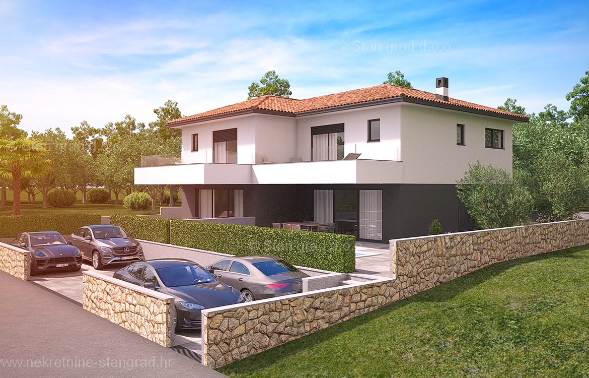 Among the excellent real estate offered by our agency in the northern Adriatic, a modern house for tourism built on the sought-after Croatian and Kvarner coastal region, the island of Krk, stands out. This desirable house is located in a very good location not far from the center of the famous tourist destination of Malinska. Structurally, this is a two-story house. The quality-built house consists of a total of 2 useful floors in terms of space and height. The total area of this house is 115 m2. This area includes the entrance area, living room and kitchen, pantry and terrace, and upstairs there are 3 bedrooms, 2 bathrooms and a terrace. The interior of the property is empty and completely free of furniture. The added value of this entire building is provided by the garden area of approx. 200 m2 with a swimming pool. In the garden of this house there is enough space to park two cars. In addition to the previous characteristics, it is important to say that the house has a beautiful view of the sea and the coast. The real estate in question is owned by a legal entity and in the VAT system. The seller guarantees the orderliness of the relevant technical and ownership documentation, as well as the possibility of a quick and smooth transfer of ownership of the house to the buyer. Your partner Stan Grad Immobilien will warmly welcome you in Kvarner and take care of your safe and successful purchase of real estate. If you decide for us, the Stan Grad Immobilien agency will be happy to help you transfer ownership of the property, as well as electricity, water and utility bills to your name.