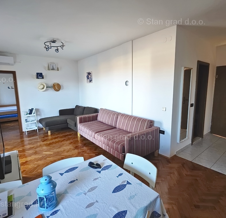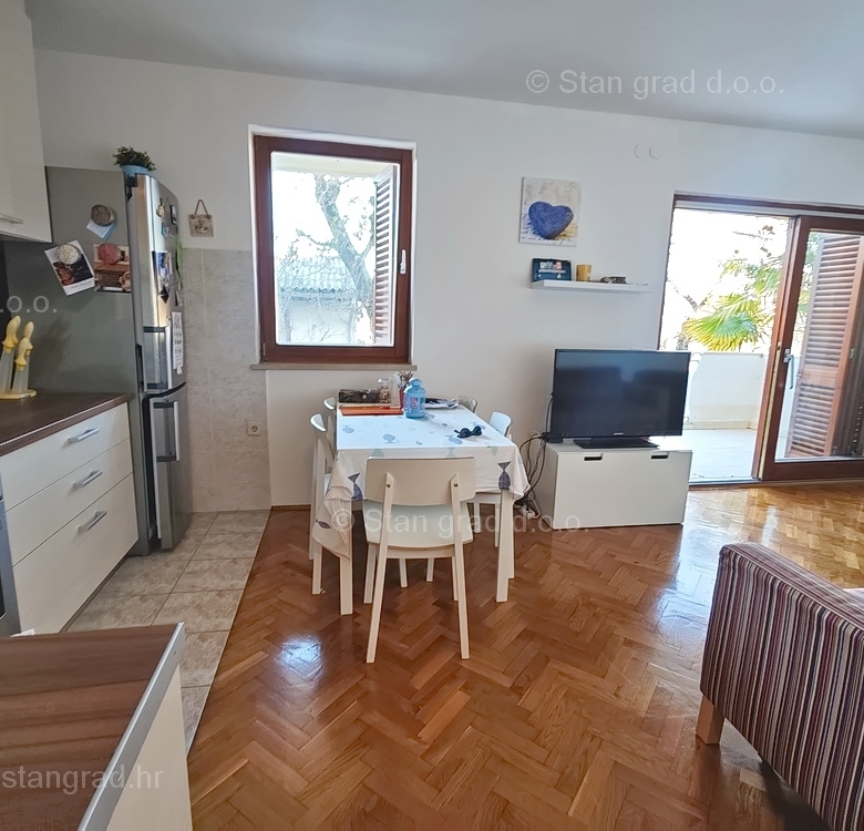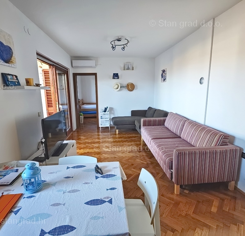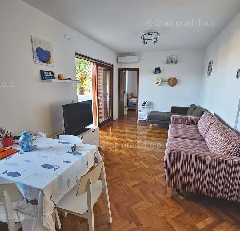 The Stan Grad Immobilien agency offers an interesting holiday apartment for sale in the traditionally most sought-after Croatian coastal Adriatic area, the island of Krk. The offered apartment is in an urban and landscaped location, close to the sea, the center and all the necessary facilities in Malinska. According to the type, this property can be classified in the category of medium-sized one-story apartments. Inside a good quality building, the apartment is located on the high ground floor. The total area covered by the apartment is approximately 53 m2. Inside the mentioned area are the living room and kitchen, bedroom, bathroom and spacious balcony. The interior of the property is furnished with solidly preserved pieces of furniture and usable technical equipment. Ownership of this apartment also includes the possibility of using the common part of the yard of the building in question. The owner of the apartment will have one parking space at his disposal. In addition to the above, it can also be noted that the apartment is oriented in such a way that it offers a nice view of the lovely coastal landscape and the immediate surroundings of the settlement. This apartment is owned by a natural person and in the name of its transfer, the buyer is obliged to pay real estate sales tax in the amount of 3%. The real estate seller guarantees a quick transfer of ownership rights and proper ownership and technical documentation. Contact us by phone, e-mail or in person at the address of our Kvarner office on the island of Krk. The agent Stan Grad Immobilien will help you in the transfer of property ownership and utility bills.