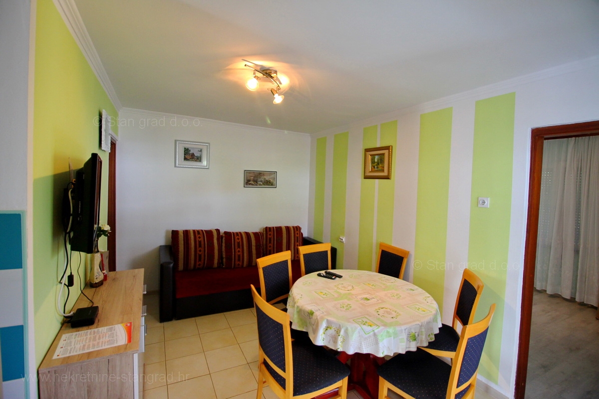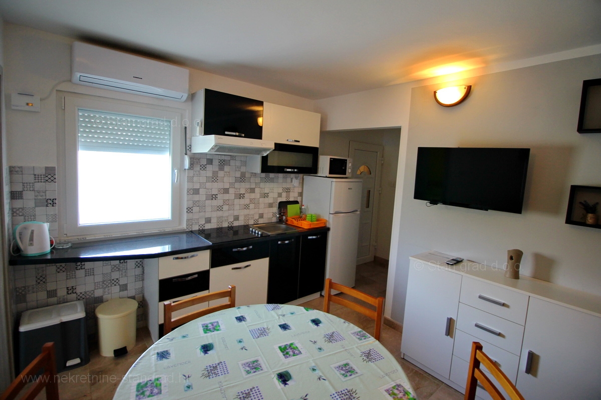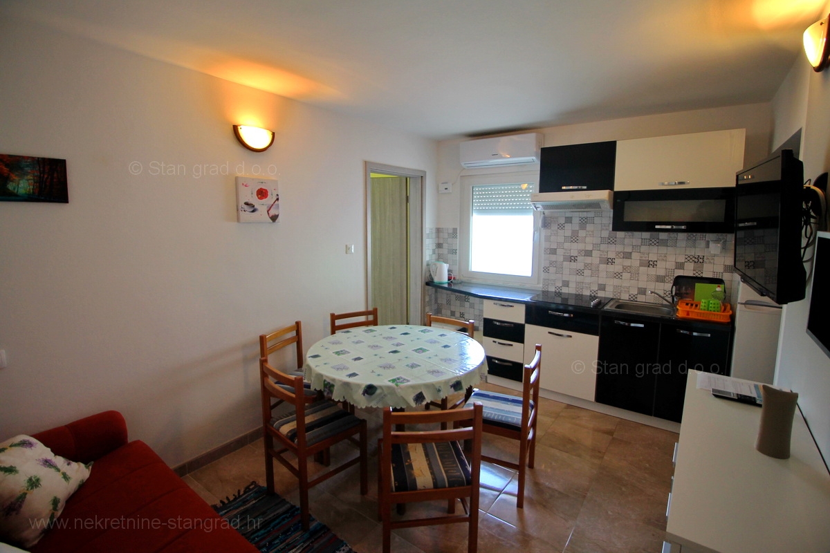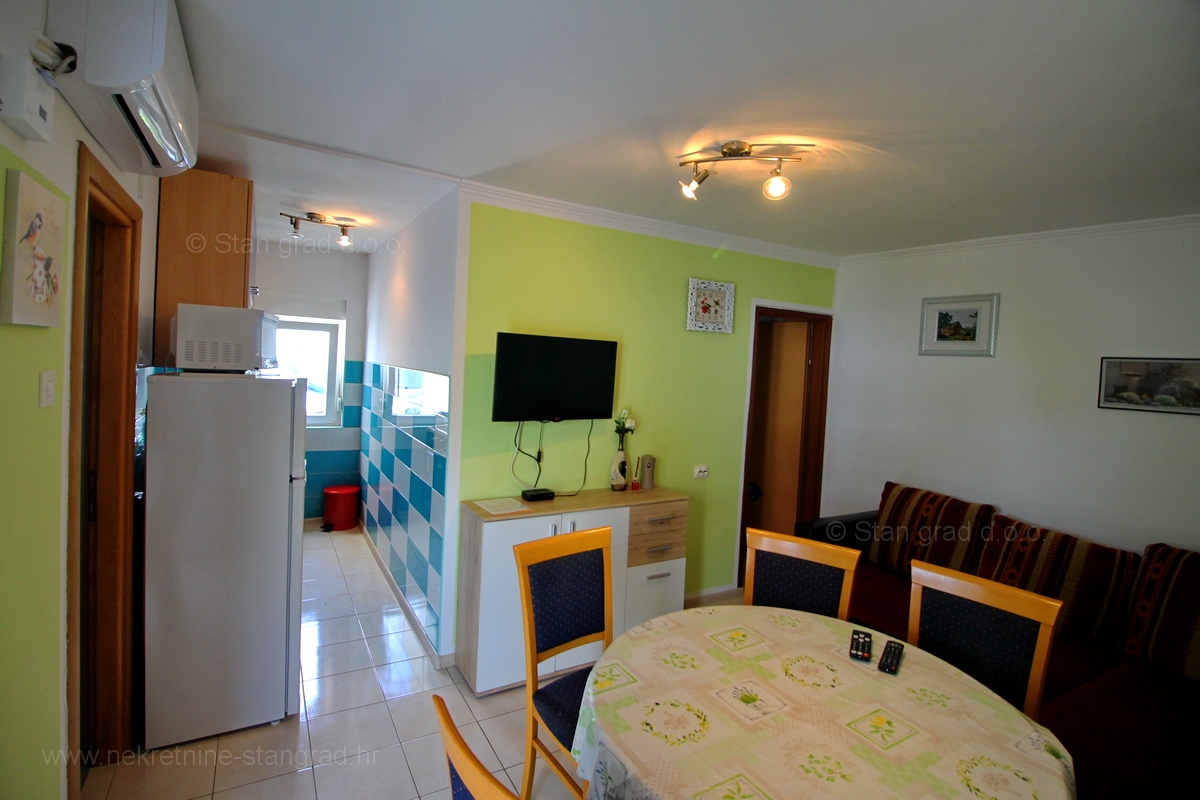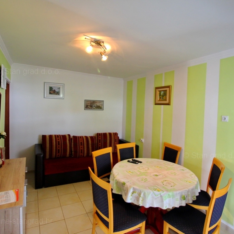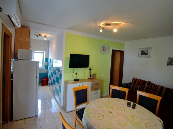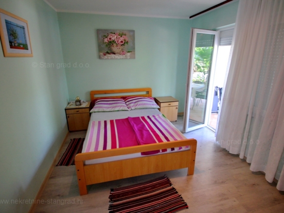 As part of our real estate offer in the charming Kvarner locality of the Island of Krk, we highlight a good opportunity to acquire a quality holiday home or family home. This interesting property is in a good location near the center of the famous coastal town of Malinska. By type of building, this is a house in a series of two-story buildings divided into 4 separate apartments. The total area covered by this house is 220 m2. On the ground floor there is a two bedroom apartment with living room, kitchen, bathroom and terrace. On the 1st floor there is one larger 2-bedroom apartment and one smaller 1-bedroom. The attic of the house is surrounded by a large room with kitchen, bathroom and terrace. The interior of the property is particularly well maintained and fully equipped with the necessary technical devices and high quality furniture. The property of this house includes a spacious garden with a beautifully decorated gazebo and barbecue area. Within the covered parking space in the yard of the property, it is possible to comfortably park more vehicles. In addition to the earlier characteristics, it is important to say the house has a beautiful view of the sea and the coast. This real estate is the property of a natural person, so the buyer is obliged to pay sales tax in the amount of 3% when transferring its ownership to his own name. The owner of the house guarantees proper ownership and technical documentation and the ability to quickly transfer ownership of the property to the buyer. We will be happy to accept the role of your partner in the search and safe acquisition of real estate in Kvarner. If you decide for us, the agency Stan Grad Immobilien will be happy to help you transfer ownership of the property, as well as electricity, water and utility bills in your name.