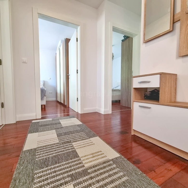 Additionally, ownership of the apartment includes the right to use the shared portion of the property’s yard. The outdoor area allows for comfortable parking of one vehicle. On top of that, the apartment offers a pleasant view of the landscaped surroundings and natural scenery.