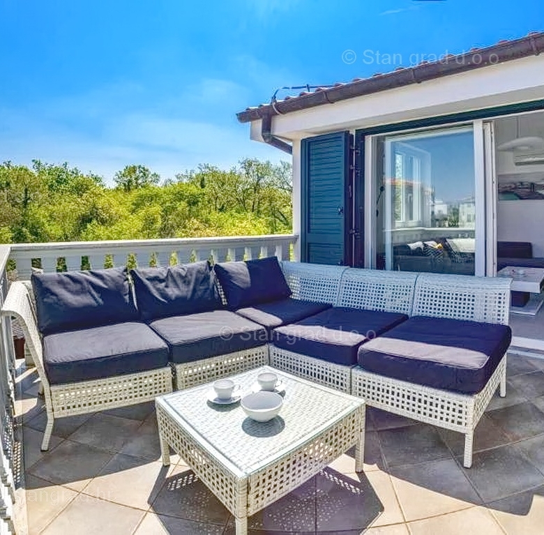 From the excellent offer of real estate in the agency Stan Grad Immobilien, a very nice apartment in the high-quality and desirable coastal Adriatic destination, the island of Krk, stands out. This apartment is located in an excellent and rarely available location, very close to the sea and within walking distance of the center of Malinska and key life amenities. In nature, it is a very spacious and comfortable one-story apartment. In a top quality building, the apartment is located on the 2nd floor. The apartment has a total area of approximately 118 m2. This area includes a living room with access to the terrace, a kitchen with a dining room with access to another terrace, 4 bedrooms, 2 bathrooms and a storage room. The property is fully equipped with modern furniture and modern and high-quality technical equipment. The owner of the apartment can use all the common parts and spaces of the property without hindrance. Two cars can be comfortably parked in the adjoining part of the garden of the described property. In addition to the previous features, the building is perfectly oriented, so that the apartment offers a wonderful view of the sea and the coast. The apartment in question is owned by a physical obligation and upon transfer of ownership is subject to the calculation of real estate sales tax in the amount of 3%. The owner of the apartment guarantees a quick transfer of the right to dispose of the property to the buyer. Contact us in person or by phone, we will try to answer all your questions. If you decide for us, the expert team of the brokerage office Stan Grad Immobilien will be happy to help you transfer the ownership of the property and the bill for utility connections to your name.