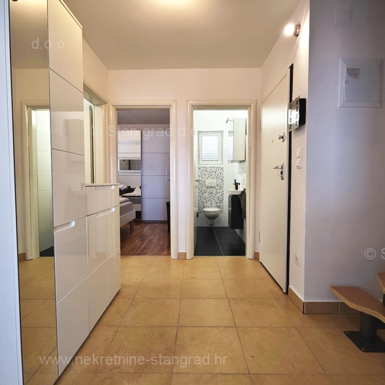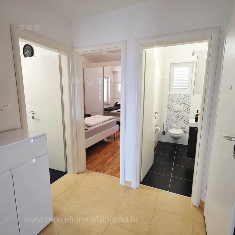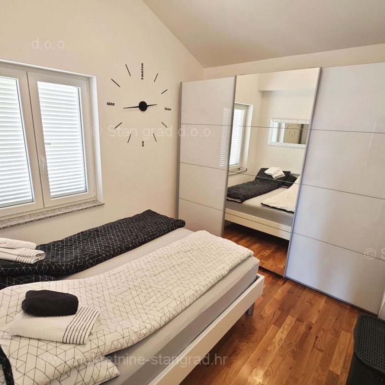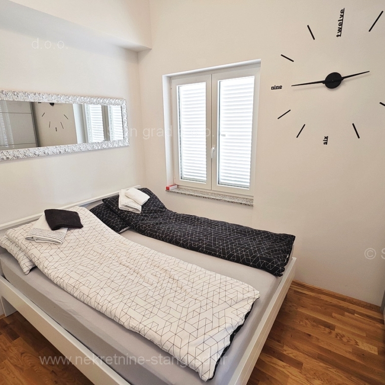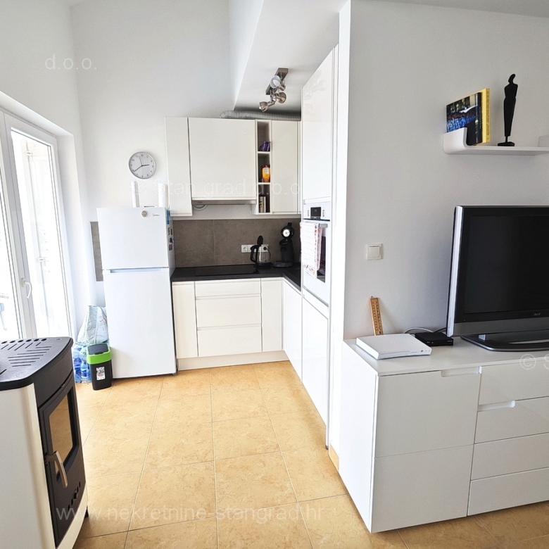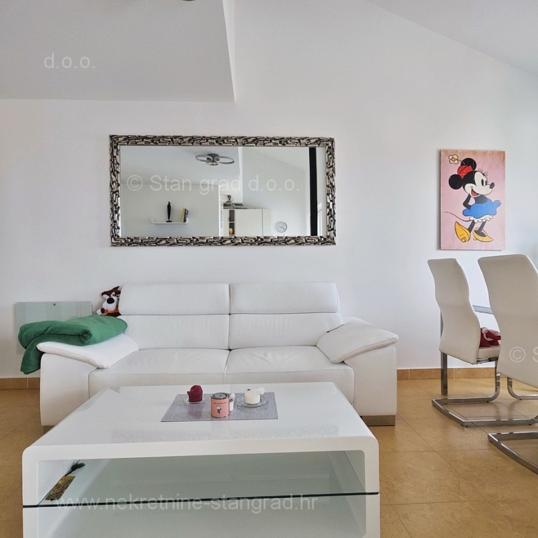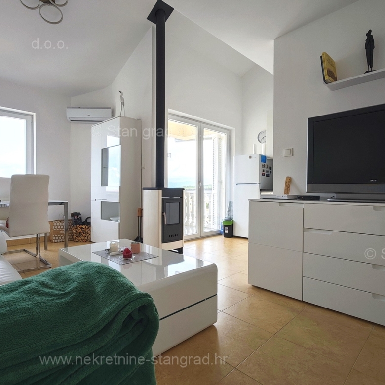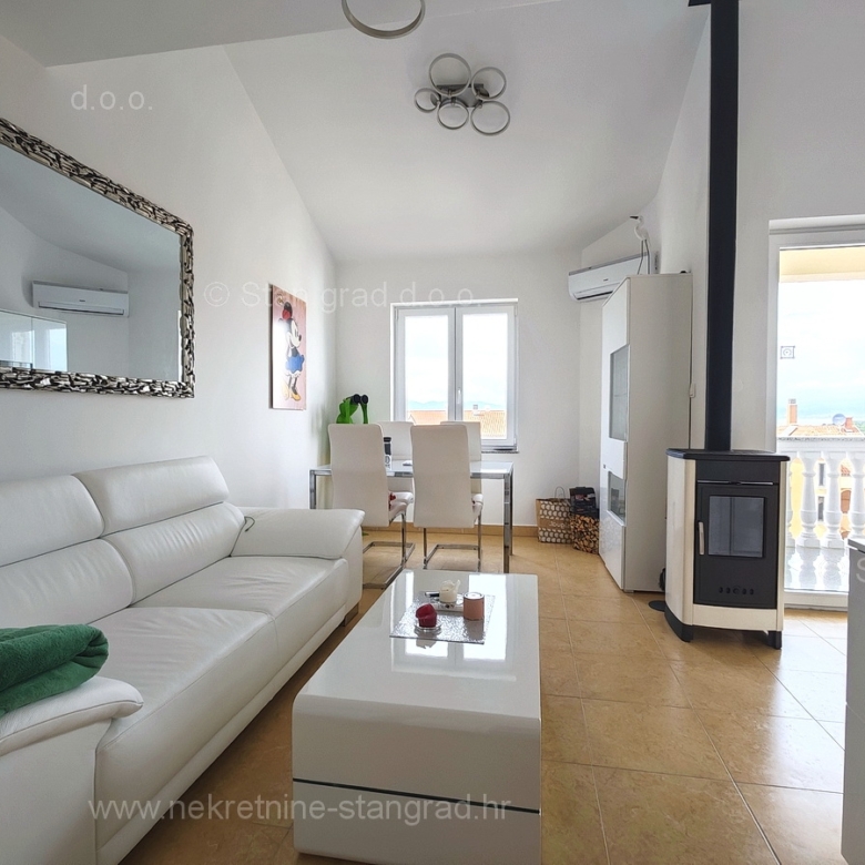 From our agency’s offer of excellent real estate in the northern Adriatic, a modern apartment built on the sought-after Croatian coastal region, the island of Krk, stands out. This apartment is located in an urbanized location near the center of Malinska. In nature, it is an extremely spacious two-story apartment that occupies two complete floors of the building. In a top quality building, the apartment is located on the 2nd floor and high attic. The apartment has a total area of approximately 78 m2. This area contains an entrance area, a living room and a kitchen, 2 bedrooms, a bathroom, a toilet and a terrace, and a high attic where there is another spacious bedroom. The property is fully equipped with modern furniture and modern and high-quality technical equipment. As part of the ownership of the property, the new owner of the apartment will have one parking space. In addition to the mentioned features, this apartment is very well oriented and offers a beautiful view of the sea and the coast. The apartment in question is owned by a physical obligation and upon transfer of ownership is subject to the calculation of real estate sales tax in the amount of 3%. The seller guarantees the orderliness of the relevant technical and ownership documentation, as well as the possibility of a quick and smooth transfer of ownership of the apartment to the buyer. Contact us by phone, e-mail or in person at the address of our Kvarner office on the island of Krk. If you place your trust in us, the Stan Grad Immobilien agency will perform all the necessary administrative procedures related to the registration and transfer of real estate for you.