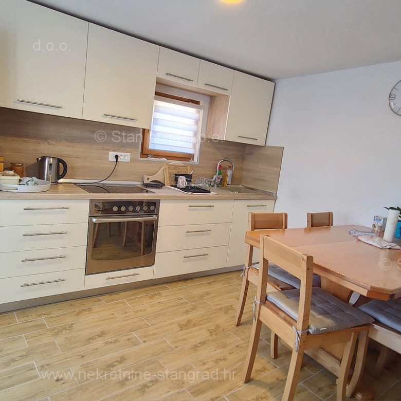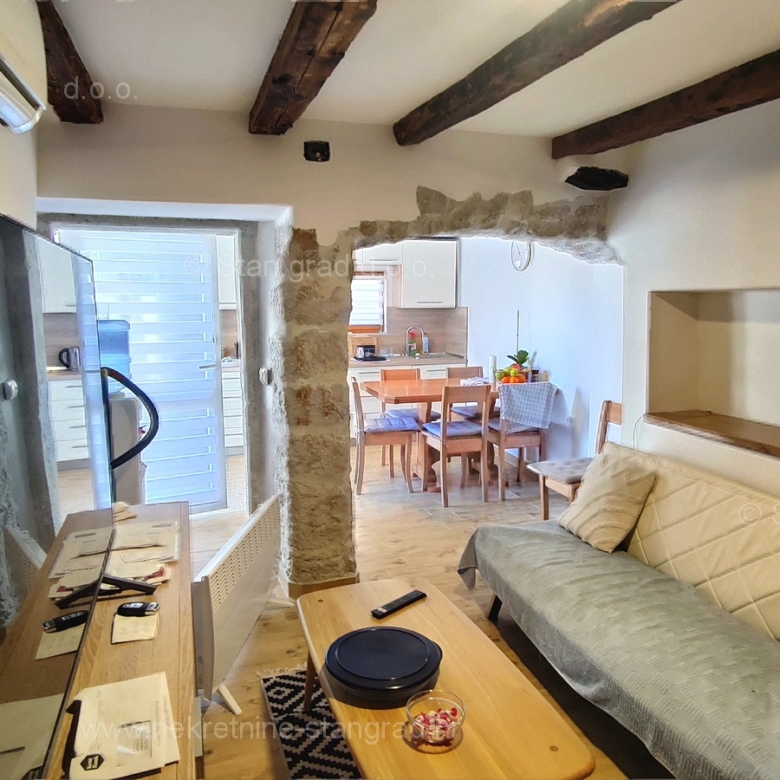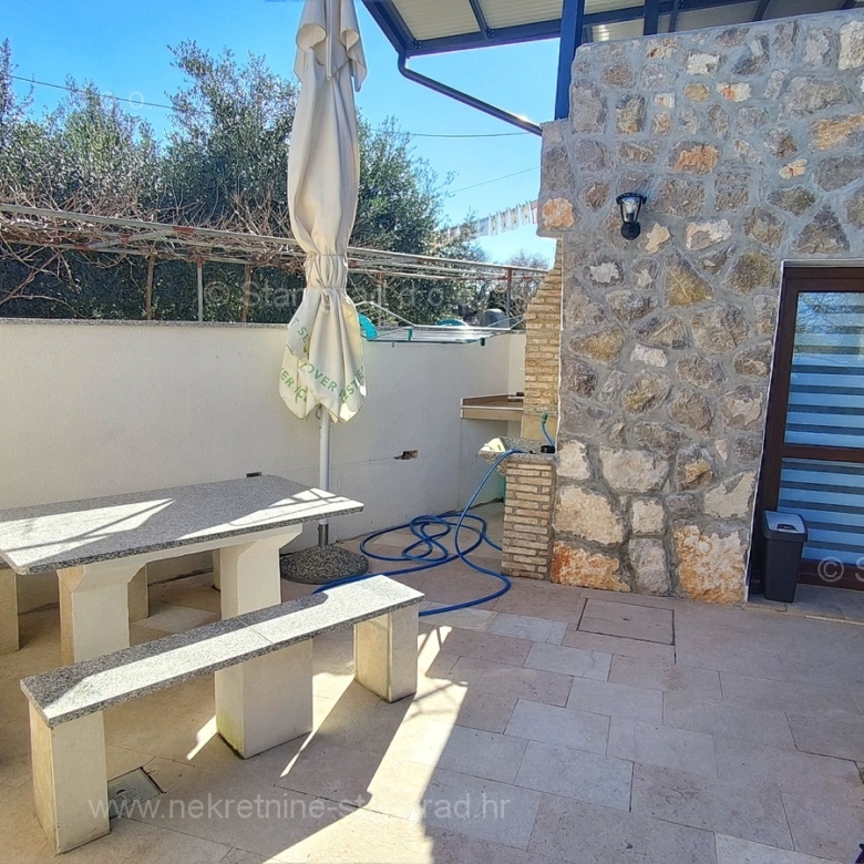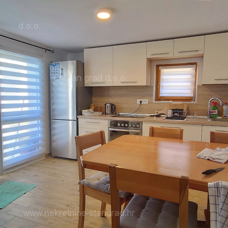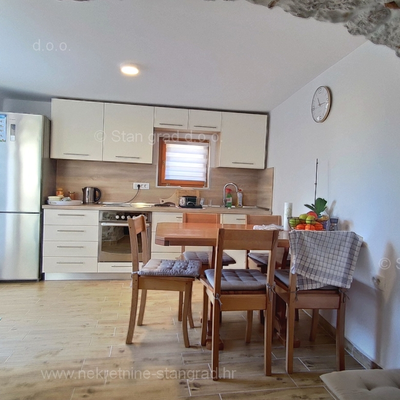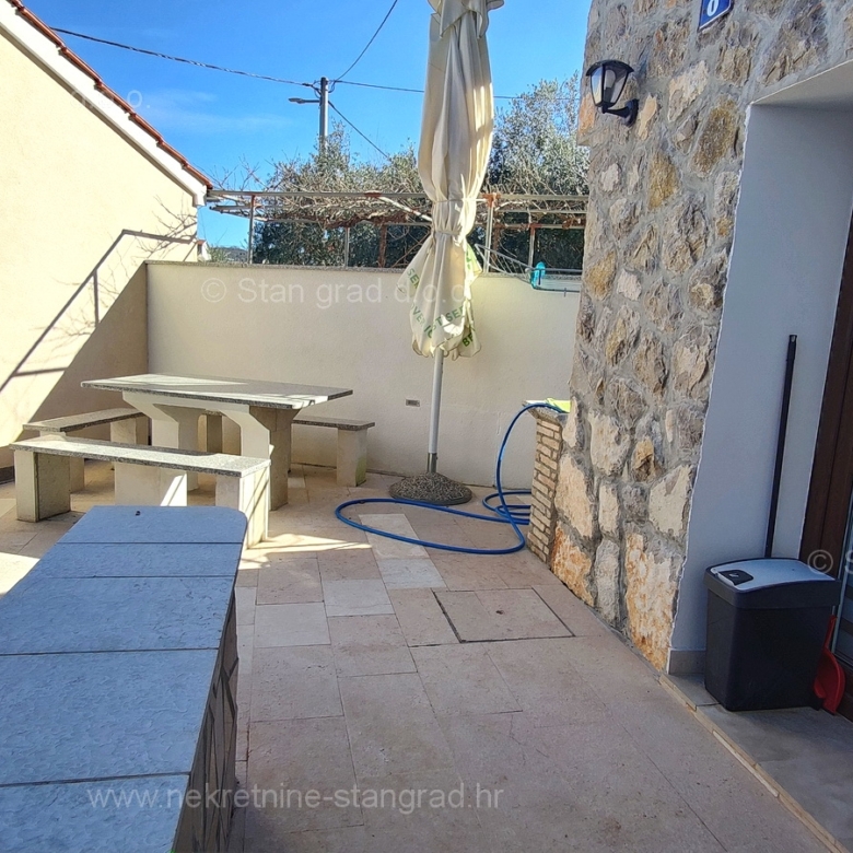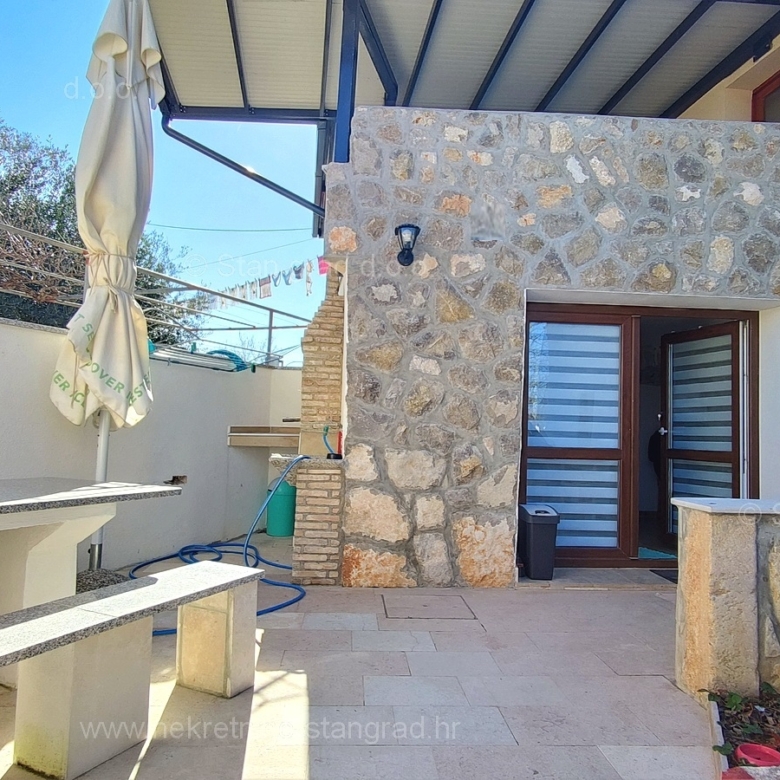 Within the traditionally attractive Adriatic and Kvarner tourist region on the island of Krk, we offer a well-kept and well-maintained house for a tourist stay or residence. The mentioned house is located near the town of Malinska, in a quiet position a little away from the noise of the city. Structurally, this is a house in a row of floors with an attic and an auxiliary building. The beautifully decorated house consists of a total of 3 spatially useful floors. The structure of the property enables housing for one or two families. The property covers a total area of approx. 100 m2. On the ground floor there is a living room, a kitchen and a bathroom, on the first floor there is one bedroom with access to a covered terrace, and in the high attic there is another bedroom. The well-maintained interior of the property has been completely renovated and decorated with quality furniture and all the necessary technical equipment. Attached to the described house is a well-organized garden where there is an auxiliary facility, which in nature is a separate studio apartment of 20 m and a space for socializing with a barbecue. Two cars can be comfortably parked in the garden of the described property. In addition, it should be noted that the house has a partial view of the sea and the coast. The house in question is owned by a physical obligation and upon transfer of ownership is subject to the calculation of real estate transfer tax in the amount of 3%. The seller guarantees clean ownership documentation of the house and easy transfer of the property. We are waiting for you in Kvarner with confidence in your satisfaction with our service. If you place your trust in us, the Stan Grad Immobilien agency will carry out all the necessary administrative procedures related to the registration and transfer of real estate for you.