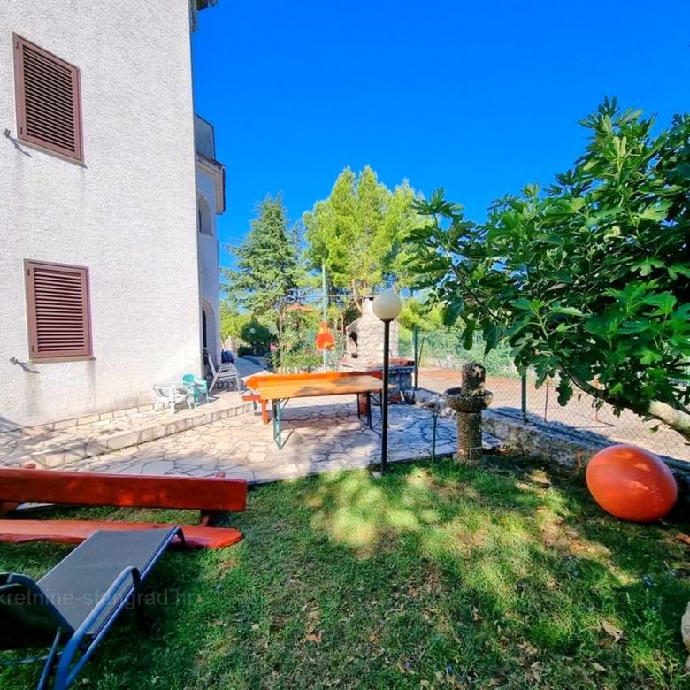 The Stan Grad Immobilien agency in Kvarner sells an interesting house in the traditionally most sought-after Croatian Adriatic area, the island of Krk. The prominent house is located in a nice location not too far from the famous town of Malinska. Detached house with a spacious garden. The house consists of 3 floors, ground floor + two floors. Each floor can function separately with its own entrance. The total area of the property is 500 m2, and in nature it consists of 3 residential units and 2 auxiliary buildings. The entire house has central heating (heating oil), and additionally installed air conditioners. The interior of the property is very well maintained and fully equipped with all necessary technical devices and quality furniture. In the adjoining, nicely organized garden next to the house, there is a grill area, a garage and an auxiliary facility. The owner of this real estate is a natural person, and when transferring its ownership to the buyer, real estate sales tax in the amount of 3% is calculated. The real estate seller guarantees a quick transfer of ownership rights and proper ownership and technical documentation. We cordially await you at the address of the office on the island of Krk. If you decide for us, the agency Stan Grad Immobilien will be happy to help you transfer ownership of the property, as well as electricity, water and utility bills to your name.