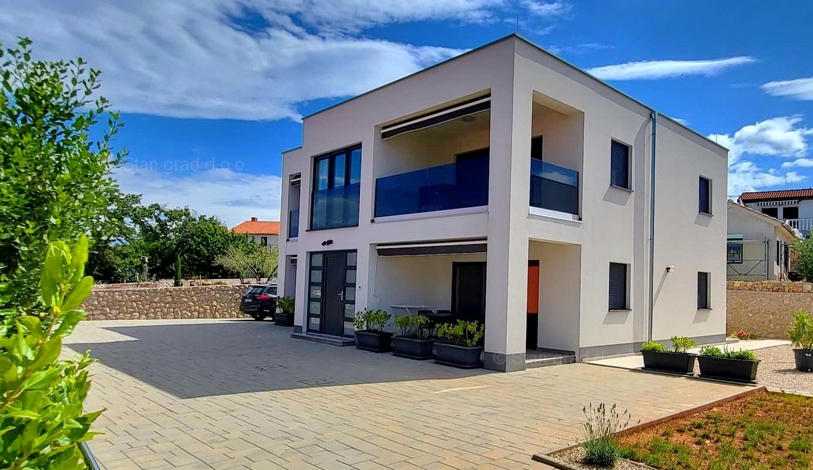 The Stan Grad Immobilien agency in the Kvarner region is offering an exceptional Mediterranean urban house built according to a modern design in the developed and attractive northern Adriatic area of the island of Krk. This affordable house is located near the well-known town of Malinska, in a green area free from city noise.