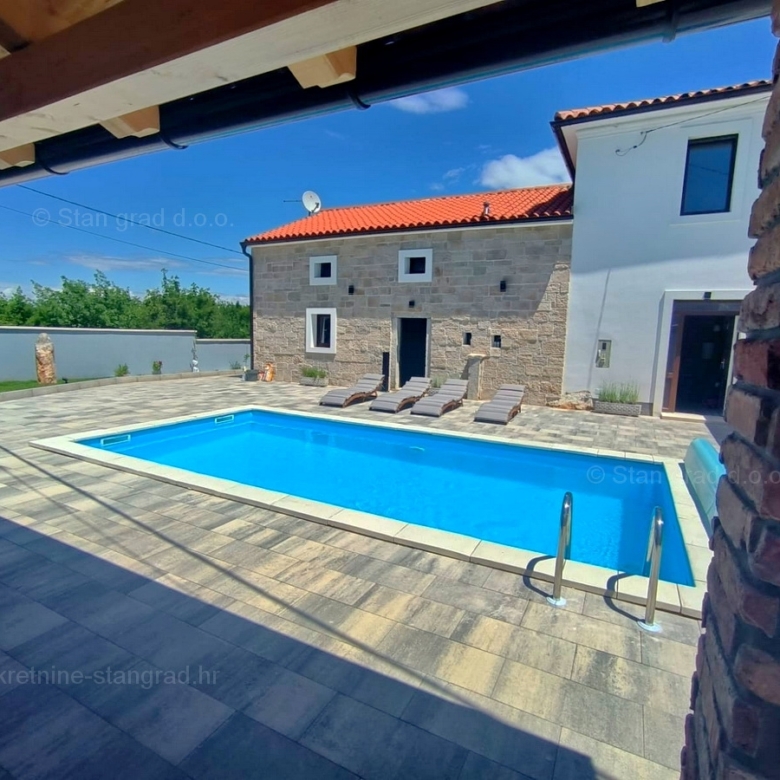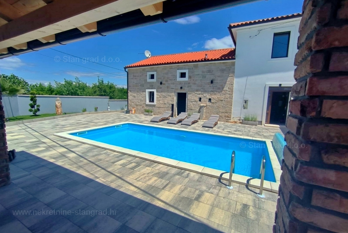 In the excellent real estate offer of the Stan Grad Immobilien agency, you will find a renovated stone house in Kvarner, on the attractive northern Adriatic tourist location of the Island of Krk. This interesting house is located in the vicinity of the famous town of Malinska, in a quiet location without city noise. In nature, this is the last house in a row of multi-storey buildings with a garden. The house has been completely renovated on 2 spatially usable floors. The internal area of the house is 134 m2. The house consists of an entrance hall, a living room with a kitchen and dining room, a staircase, a bathroom, a laundry room and a storage room and a first floor with 3 bedrooms, 2 bathrooms, a toilet, a corridor and a staircase. In addition to the interior living space of the house, the ownership of this property includes a garden with a swimming pool, a sun deck and a grill area. The yard of the property includes a place arranged for comfortable parking of vehicles. This real estate is owned by a natural person and in the name of its transfer, the buyer of the house is obliged to pay real estate sales tax in the amount of 3%. The owner of the house guarantees proper ownership and technical documentation and the possibility of quickly transferring ownership of the property to the buyer. We will gladly accept the role of your partner in the search and secure acquisition of real estate outside Kvarner. The sales team of the Stan Grad Immobilien agency will be happy to assist the buyer of this property in transferring ownership of the property to the land register and transferring bills for electricity, water and garbage collection to their name.