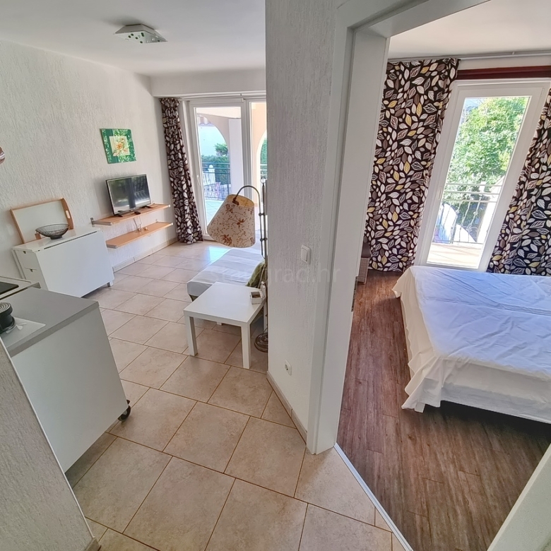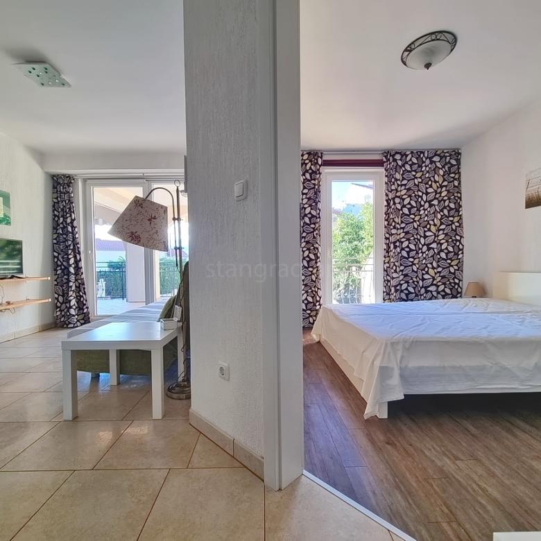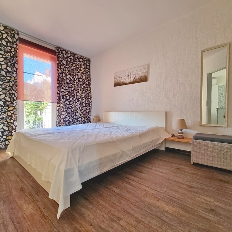 U ponudi naše agencije na super atraktivnom sjevernojadranskom području otok Krk prodaju se dva potpuno uređena apartmana koji pružaju savršen ugođaj provođenja godišnjih i vikend odmora. Ovi apartmani su smješteni na odličnoj i rijetko dostupnoj lokaciji u samoj blizini mora te na pješačkoj udaljenosti od središta mjesta Malinska i ključnih životnih sadržaja. Prema vrsti nekretnine, ovo su manji jednoetažni apartmani. U okviru vrlo lijepe građevine, apartmani su pozicionirani u visokom prizemlju. Ukupna stambena površina apartmana je 58 m2. Tom površinom obuhvaćene su dvije zasebne stambene jedinice, od toga je jedan studio apartman s kupaonicom, a drugi apartman s jednom spavaćom sobom, kupaonicom, dnevnim boravkom i kuhinjom. Oba apartmana imaju izlaz na terasu površine cca 26 m2. Unutarnji prostori nekretnine su osobito dobro održavani te u potpunosti opremljeni potrebnim tehničkim uređajima i vrlo kvalitetnim namještajem. Za napomenuti je svakako i to da opisanom apartmanu pripada dio okućnice površine 40 m2 s roštiljem. The owner of the apartment will have one parking space at his disposal. In addition to the properties described earlier, the property is very well oriented and offers a tempting view of the sea and the natural landscape from the apartment. This apartment is the property of a natural person, so the buyer is obliged to pay sales tax in the amount of 3% when transferring its ownership to his name. The owner of the property guarantees the orderliness of the relevant ownership documents and the possibility of a quick transfer of ownership of the apartment to the buyer. We are waiting for you in Kvarner, at the address of the office on the island of Krk. If you decide to cooperate with us, the brokerage office Stan Grad Immobilien will be happy to help you with the transfer of property ownership and associated utility connections.
