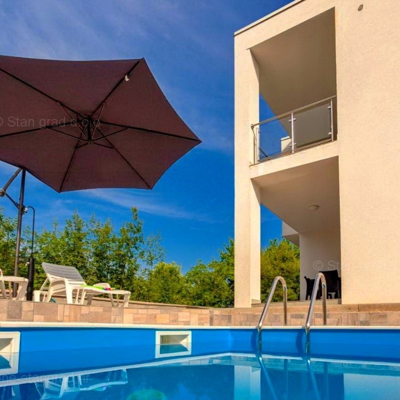 Among the excellent real estate offered by our agency in the northern Adriatic, a modern apartment built on the sought-after Croatian coastal region, the island of Krk, stands out. This apartment is located in the vicinity of the town of Malinska, in a green and quiet location without noise, which offers quick traffic access to the tourist center, the sea and the beaches. In nature, it is a very spacious and comfortable two-story apartment. Within a very beautiful building, the apartment is located on the 1st and 2nd floors. The total area of this apartment is 64 m2. On the ground floor there is a living room, a kitchen with a dining room, a toilet and a terrace, and on the first floor there are 2 bedrooms, a bathroom and a terrace. It should be noted that the added value of the apartment is given by the adjoining garden with a swimming pool and sunbathing area, as well as a garden house and barbecue. This apartment is owned by a parking space for parking two cars. In addition to the described characteristics, the property is also conveniently located, so it provides a very nice view of the charming seaside village. This apartment is owned by a natural person and in the name of its transfer, the buyer is obliged to pay real estate sales tax in the amount of 3%. The real estate seller guarantees a quick transfer of ownership rights and proper ownership and technical documentation. Visit us on the island of Krk and make sure that your satisfaction is our priority. If you decide to do business with us and possibly purchase real estate, our agents will help you register the ownership of the apartment and other necessary administrative tasks.