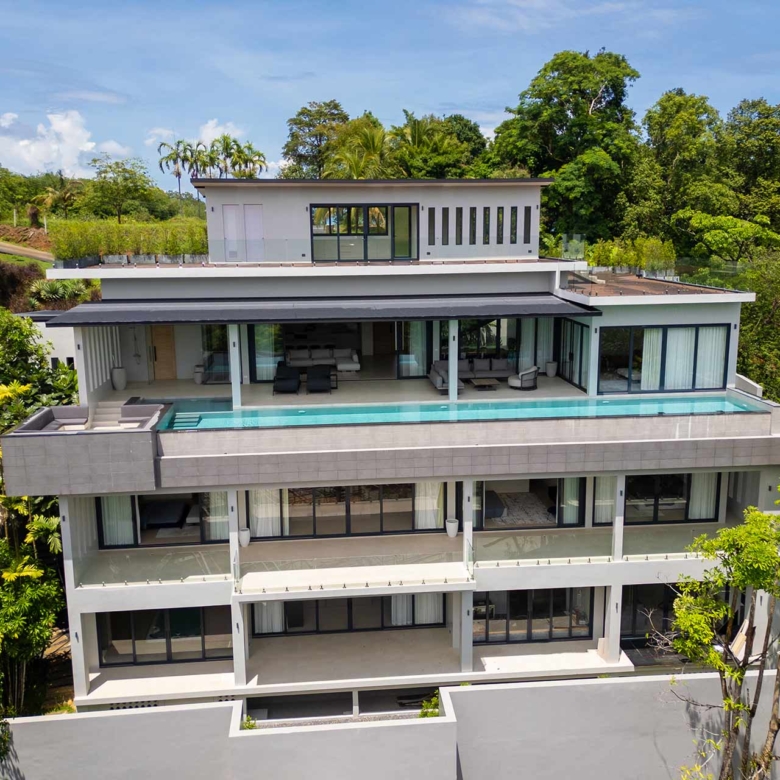 Perched in the tranquil hills of Baan Manik, just minutes from Laguna Phuket and the island’s west coast beaches, Villa 7 – Manik Hillside offers a rare blend of sleek modern architecture, serene natural surroundings, and ultimate privacy. Designed for comfort and elegance, this spacious 5-bedroom, 6-bathroom villa is ideal for discerning buyers seeking a refined residential retreat or a premium investment property in central Phuket. Set on a generous land plot of 1,142 sqm with a built-up area of 804 sqm, the villa is cleverly positioned to maximize unobstructed mountain views and natural airflow. Clean lines, expansive glass walls, and a warm material palette create a seamless indoor-outdoor lifestyle, while the lush hillside setting ensures peace and seclusion. The open-plan living and dining areas open out to a stunning 12-meter infinity pool and shaded outdoor lounge—perfect for entertaining or simply relaxing in nature. All five en-suite bedrooms are well-proportioned, with the master suite offering a private terrace and soaking tub with panoramic views. Additional highlights include a fully-equipped western kitchen with island counter, a media room, maid’s quarters, ample storage, and covered parking for two cars. Property Details: 5 Bedrooms | 6 Bathrooms Land Size: 1,142 sqm Built-Up Area: 804 sqm 12m Infinity Pool with Mountain Views Chanote Title | Freehold Ownership Available Gated Community with 24/7 Security With its prime location near international schools, golf courses, shopping, and the Laguna lifestyle hub, Manik Hillside Villa is ideally suited for families, long-term residents, or investors seeking a luxury villa with exceptional design and rental appeal. Contact ThaiEstate today to schedule your private viewing of this remarkable hillside residence.