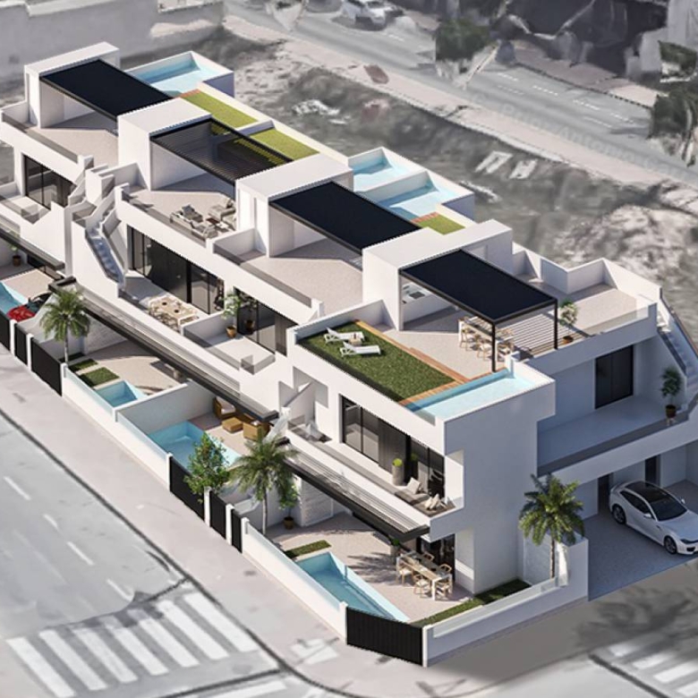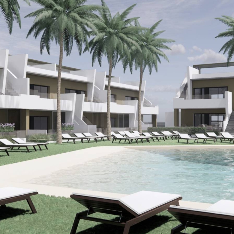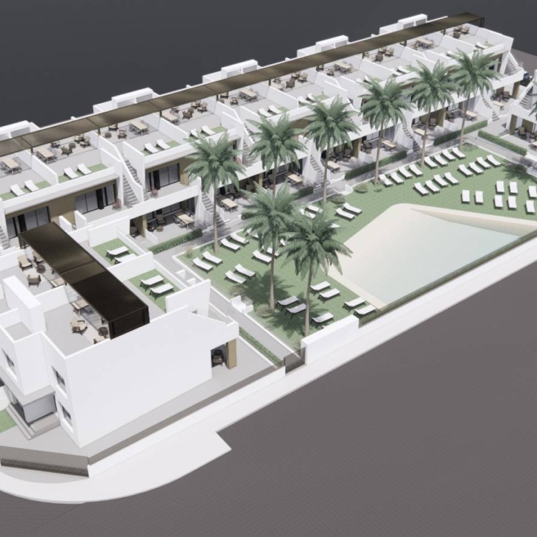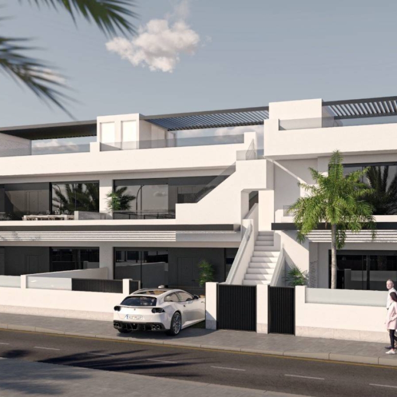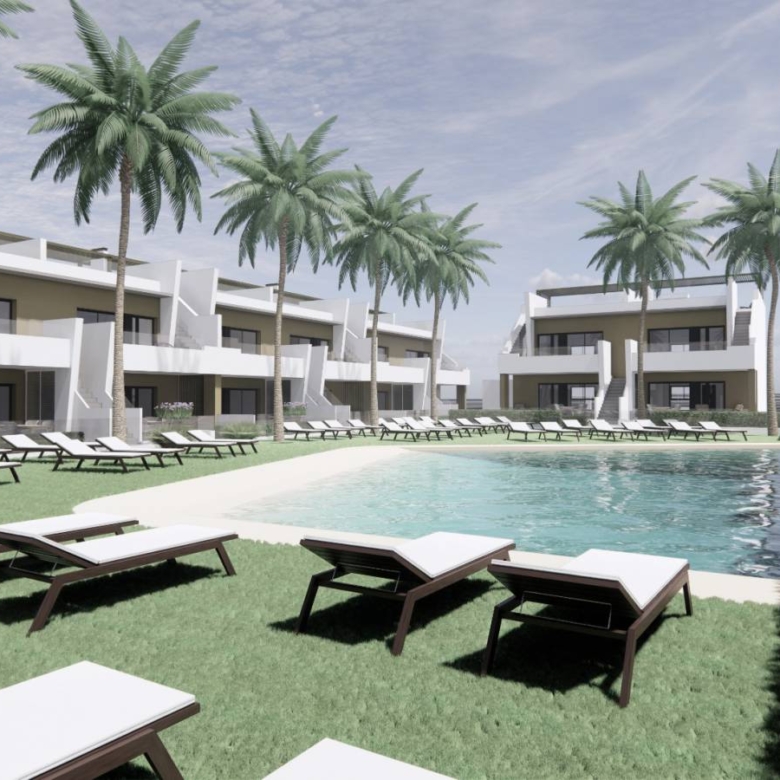 Bungalows for sale in Mar de Cristal, Murcia, Costa Calida Ground floor or upper floor homes with solarium. These incredible homes are located just 1 km from the beach, close to all services and the city center, it consists of 3 bedrooms and 2 bathrooms, living room, kitchen, private parking within the plot in the homes located The ground floor. They have excellent qualities. INCLUDED IN ALL BUNGALOWS - Bosch or Siemens appliances- Covered area on the terrace- Air conditioning- Internal and external lights (led)- Fully equipped kitchen + island and table- External sound speakers- Aerothermic water heater- Fully equipped bathrooms- 3rd multifunctional room (except n12 Phase II)- Suspended toilets- Underfloor heating in 2 bathrooms- Sliding doors in all rooms- Built-in bidet tap- Showers with thermostatic taps- Indoor and outdoor 90×90 cm porcelain floor- Designer furniture in the bedrooms- Sliding windows on the wall- Automatic door for the car (GROUND FLOOR)- Separate walls approx. 1.80m for privacy around the garden (GROUND FLOOR)- Closed storage in the garden (GROUND FLOOR)- Alarm installation Property ID: GH-24103 Price: €249,950 Property Size: 91 m2 Land Area: 109 m2 Bedrooms: 3 Bathrooms: 2 Property Type: Apartment Property Status: For Sale