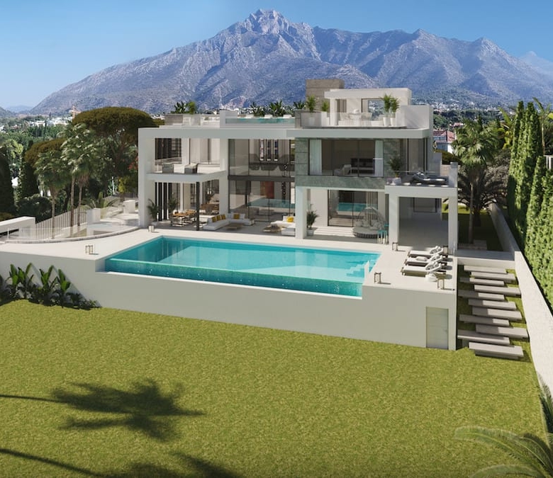 New Development: Prices from 6,900,000 € to 6,900,000 €. [Beds: 7 – 7] [Baths: 8 – 8] [Built size: 1,131.00 m2 – 1,131.00 m2] BUILDING LICENCE ON PLACE ! TURNKEY PROJECT ! This project is a unique luxury south facing villas, which has an unbeatable location on the mountain peak of the most prestigious area of the Golden Mile, Marbella. The development are projected by modern architecture bureau Villarroel Torrico with the idea to enjoy the views of the Mediterranean Sea and Sierra Blanca from any space of the house. The outside territory is created in the same style as the house and is its harmonious continuation. The picturesque plot of 1.975 m2 has a landscaping garden with lawn realized by the best specialists, a modern swimming pool, BBQ, an outdoor parking for 3 cars. Built with high quality materials, villa has facade finished with large porcelain blocks siding with careful attention to details, including unusual architectural features and quality equipment and technology, electric heating in whole house, an elegant lighting solution, electric shutters, innovative solutions from Schuco’s Windows systems and much more make these villas truly unique. This development has 7 bedrooms and 8 bathrooms distributed in a constructed area of 1.130 m2, more 320m2 of open and covered terraces. Modern and elegant interiors, natural light, spacious rooms and big terraces are at the core of the development concept. The space of the villa is distributed in 4 levels, the access to which is done through the elevator and a marble staircase. In the basement level there are 2 guest bedrooms with a shared bathroom, SPA area that includes sauna, Turkish bath and gym, and also there is a bar and cinema room, lounge area with indoor pool, garage for 4 cars, a wine cellar, an additional bathroom, laundry and a warehouse. On the ground floor we can find the main entrance with lakes and tropical gardens that invites us to the main hall, that provides to the living room with fireplace that with open windows is converting into a unique space to the outside to the terrace with large lounge area with pool, then we can find a dining room and fully equipped kitchen with Gaggenau appliances, an additional kitchen area for domestic servants, on the same floor there are 2 bedrooms with en-suite bathrooms. On the second floor there are 3 bedrooms with dressing rooms, terraces and bathrooms en-suite. The master bedroom includes a large dressing room with fitted wardrobes, private terrace with solarium and chill-out area, own luxury bathrooms, which offer a fascinating design with a novelty of interior decoration. Going up to the solarium, we find a magnificent view of the sea that can be enjoyed from the terrace with jacuzzi and swimming pool area. The development offers the opportunity to feel away from the daily life, in the same time they are easily accessible to the main road and very close to everything, including the historic center of Marbella and the glamour of Puerto Banus. In a few minutes, there are white sand beaches of Golden Mile of Marbella, golf courses, tennis courts, supermarkets, Michelin star restaurants and beach bars by the sea, as well as hospitals, international schools (Spanish, English and German), fashionable beach clubs, luxury hotels. This development is located in Golden Mile of Marbella, the secret place but close to everything! Experience Exceptional Service Only With Us When Purchasing Your Marbella Home. We offer our clients an unrivaled service, from first contact to moving into your new home in the sun, we will be with you on your journey all the way. Our aim is to exceed all expectations delivering excellent service, up to date real time property listings, and a customer experience that is unrivaled in the real estate industry. We have access to the best lawyers, most competitive mortgage solutions and the best money exchange rates available. Put your trust in us to deliver an informative, caring, no hidden cost solution that will help to make your purchase in the sun stress free, easy and enjoyable. House for sale in Marbella Property ID: AVH-R3306982 Price: €6,900,000 Property Size: 1131 m2 Land Area: 1975 m2 Bedrooms: 7 Bathrooms: 8 Property Type: Villa Property Status: For Sale