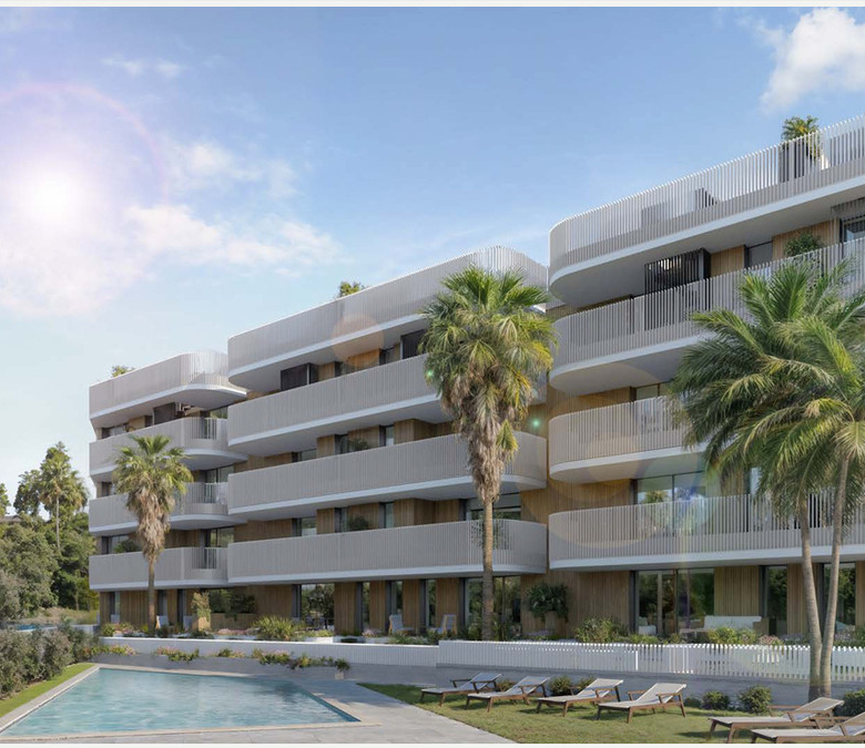 The apartments are available with 2 bedrooms and 2 bathrooms, one of which is en-suite, and have large terraces to make the most of the views. Each home has a fully equipped kitchen with appliances, air conditioning, heating and double glazing. The penthouses have a solarium and a private swimming pool on the roof, adding an extra dimension to luxury living.