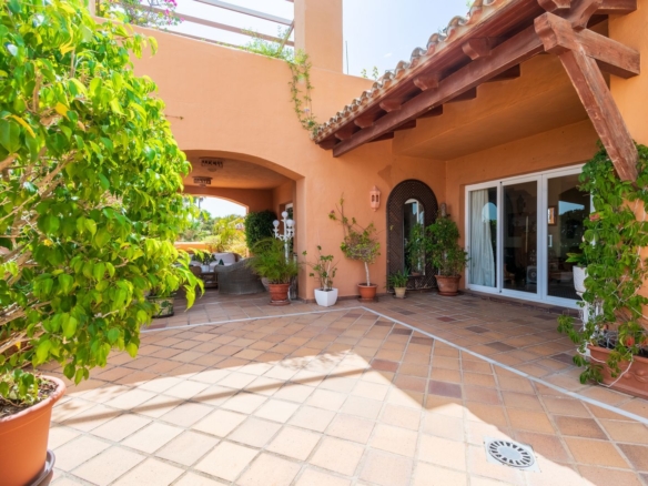 Absolutely stunning three bedroom luxury apartment located within the sought after gated and secure community of Les Belvederes in La Cerquilla, Nueva Andalucia. This stunning three-bedroom home offers uninterrupted panoramic views of the sea, mountains, and the picturesque Golf Valley. The property has been beautifully maintained by the current, and briefly comprises; upon entering, you are greeted by an impressive entrance that leads into a spacious hallway. From here, you have access to the elegant lounge and kitchen, as well as three large bedrooms, each featuring its own en-suite bathroom. The highlight of this property is undoubtedly the expansive terrace, where you can enjoy breathtaking views of the sea, mountains, and La Concha mountain.This property is equipped with modern comforts including hot and cold air conditioning throughout, and a working fireplace in the lounge. Additionally, it includes the convenience of underground parking and a private storage room.Les Belvederes offers exceptional communal amenities such as stunning mature gardens, a heated swimming pool, two tennis courts, and a gymnasium complete with a sauna. The community is meticulously maintained, with tropical gardens and beautiful courtyards enhancing its appeal.Nestled in the heart of Nueva Andalucia, this penthouse seamlessly blends luxury with traditional Andalusian architecture. it is a rare find that promises a sophisticated lifestyle with first-class facilities. Don’t miss the chance to own this exquisite property and experience the finest in coastal living – contact us now!