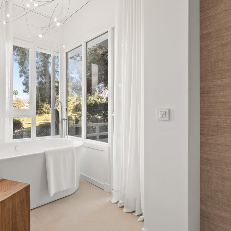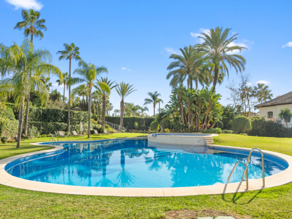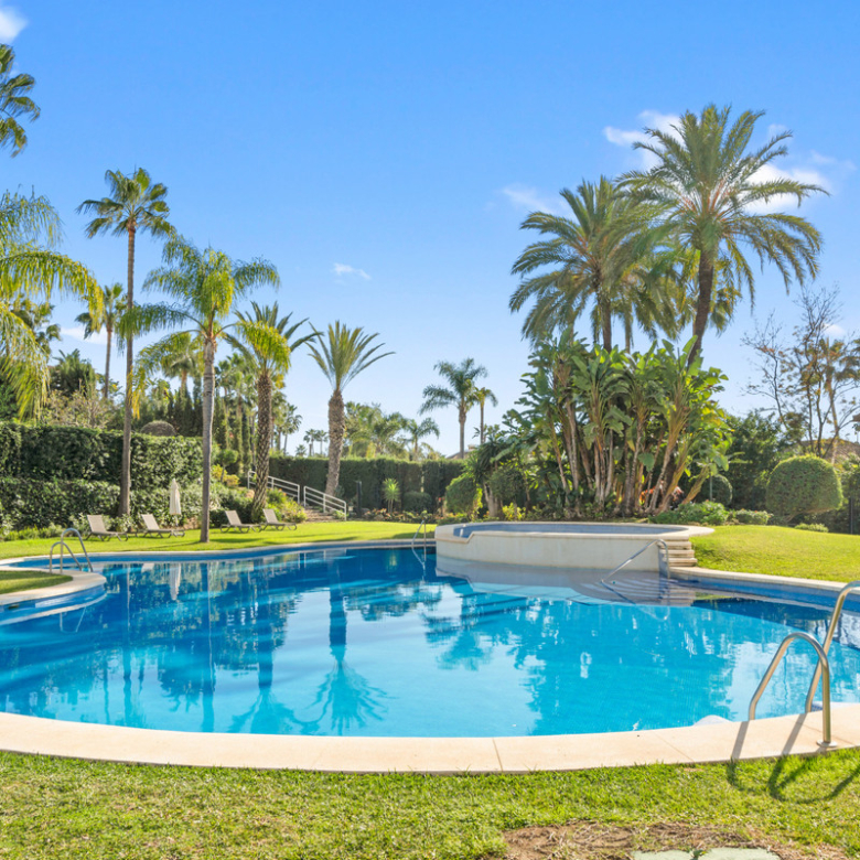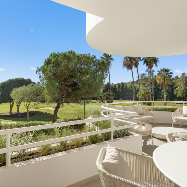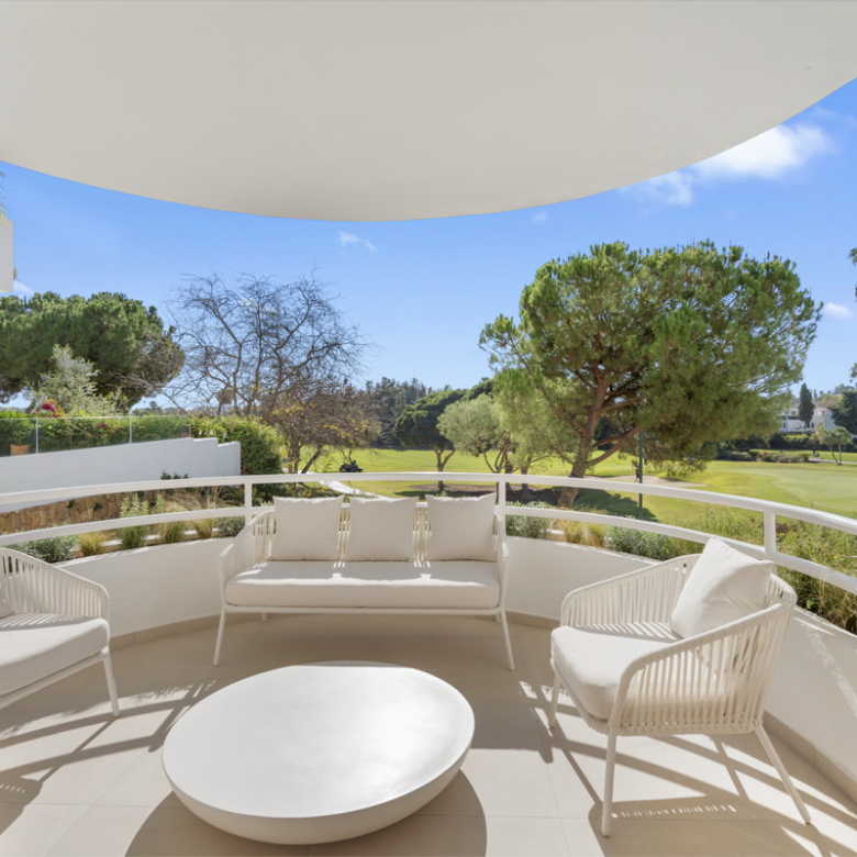 It has three bedrooms and three bathrooms, all generously sized. The apartment is situated directly next to Los Naranjos Golf Course, making it ideal for golf enthusiasts, with other well-known courses like Las Brisas and Aloha nearby. It is also conveniently close to Puerto Banús, local beaches, and a wide range of dining and shopping options in Nueva Andalucía.