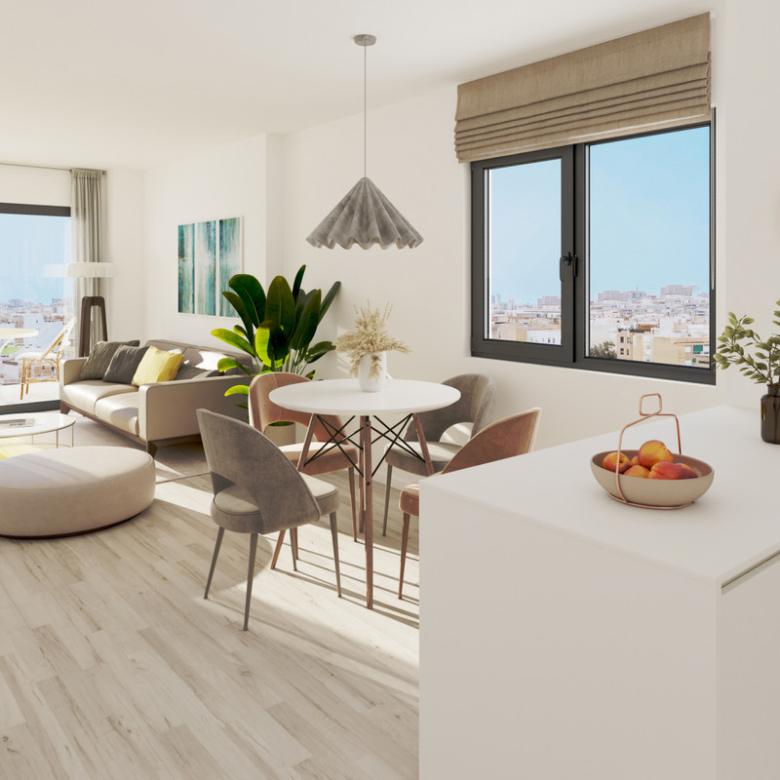 This is a new development consisting of 35 1 and 2 bedroom apartments, distributed in 2 blocks with seven-storey buildings, with a large interior courtyard, rooftop swimming pool and lounge area. The apartments have wide views of the city of Malaga. All the properties have a modern design with optimal layouts and high quality materials to achieve the maximum space, functionality and luminosity in each room. In addition, all homes come with a parking space and storage room included in the price.
