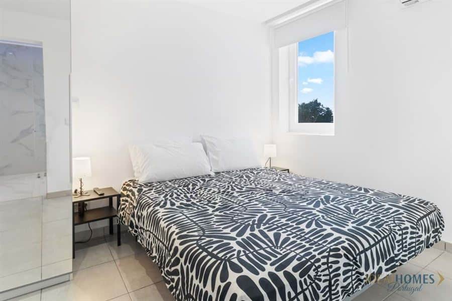 Modern 1-Bedroom Duplex Apartment in Faro with Private Terrace and ParkingThis 1-bedroom apartment, located on the first floor, offers a unique opportunity for those seeking comfort and functionality, with the added benefit of being convertible into a 4-bedroom property. Designed with a generous open-plan layout, it seamlessly integrates the living room and kitchen into a harmonious, air-conditioned space that feels both cosy and modern.The kitchen is fully equipped with state-of-the-art appliances, backed by an initial two-year warranty, extendable to five years, ensuring quality and durability. High-end finishes include false ceilings with recessed lighting and multicolour LED mouldings, adding a contemporary and stylish touch. The apartment is also pre-wired for home automation, enhancing convenience, and features tilt-and-turn double-glazed windows and electric shutters for thermal comfort and efficiency.The en-suite master bedroom is air-conditioned and includes a spacious closet, offering excellent storage. Recently renovated, the property has undergone significant upgrades to its electrical and plumbing systems. Additional features include a laundry area with a water heater and access to a private terrace with an extra bathroom, perfect for leisure and privacy.Energy efficiency is ensured by solar panels, which not only reduce energy costs but also generate income from surplus energy sales. The apartment also provides private parking, adding convenience and security to your daily routine.Situated just 2.5 km from Fórum Algarve and 10 minutes from Faro Airport, this property enjoys a prime location with easy access to all essential amenities and city services.With its modern design, energy efficiency, and strategic location, this apartment is the perfect choice for a personal residence or investment. Contact us today to schedule a viewing and discover this unique property.