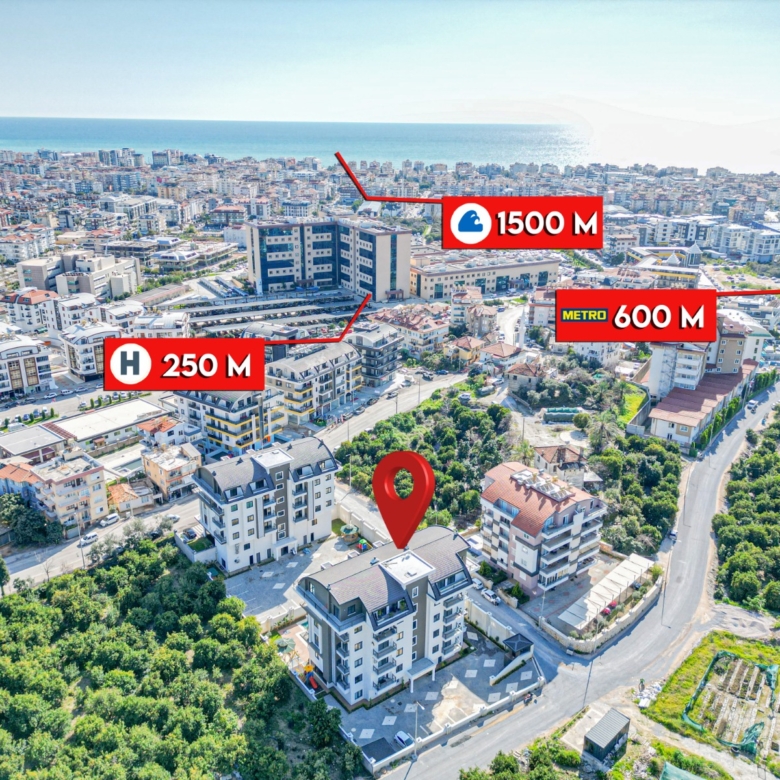 Located just 1,500 meters from the sea, this Oba apartment for sale is perfect for those seeking a relaxed lifestyle near the beach. Its strategic location combines tranquility with easy access to local markets, cafes, and public transport, making it an ideal investment or a cozy home in Alanya.