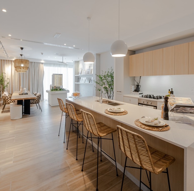 Bedrooms: Generous layouts with crisp white walls, warm wood accents, and large balconies for a serene retreat