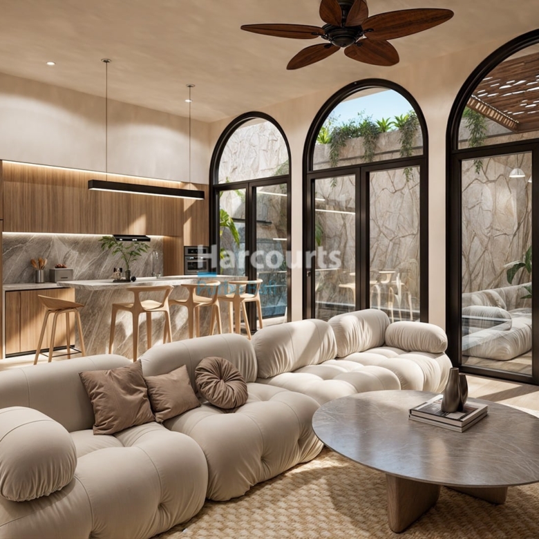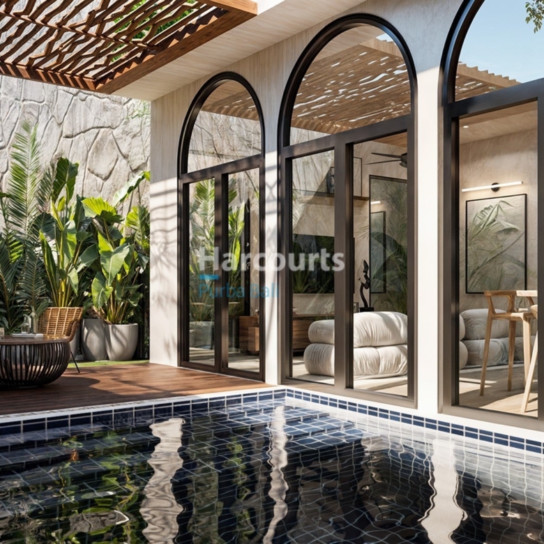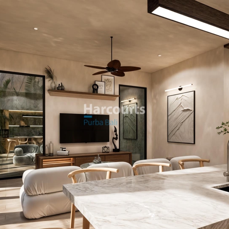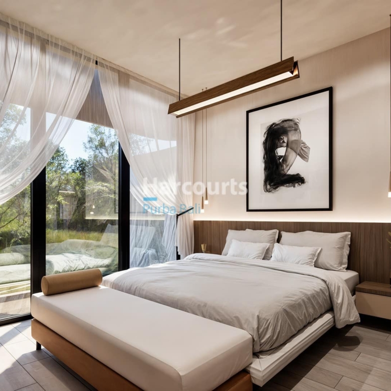 Located in the sought-after Pecatu area of Uluwatu, this off-plan villa offers an exceptional opportunity to own a piece of Bali’s most iconic destination. Uluwatu is renowned for its pristine beaches, world-class surfing, and breathtaking sunsets, attracting visitors from all over the globe. From the cultural allure of Uluwatu Temple to the luxurious ambiance of nearby resorts like Bvlgari, this area blends tranquility with modern living. Additionally, the proximity to fine dining establishments and vibrant attractions, makes this location second to none for lifestyle and investment potential.Set on an 295-square-meter plot, the villa boasts a sleek, modern design with a single-level layout. it features four bedrooms, each with ensuite bathrooms, and a total of five bathrooms for convenience. The spacious living area is adjacent to a fully equipped kitchen, creating a seamless close-living concept perfect for entertaining. A private rectangular pool measuring 5.6 by 3 meters adds to the villa’s appeal, alongside a small garden space and parking for one car.The villa comes fully furnished and ready to enjoy upon completion in 2025. its FREEHOLD status (Hak Guna Bangunan) ensures long-term ownership, with zoning designated for residential use, making it an excellent option for both personal use and rental income.Priced at iDR 10,450,000,000, this villa is the most affordable option within the estate, which includes other units with varying layouts and features. With prices starting at this attractive entry point, now is the time to secure your slice of paradise in Bali’s iconic Uluwatu.Also Available Others Unit:Type A: 85 m2, 2 bedrooms (2 master suites), 3 baths, private pool and patio, rooftop pool with second kitchen, ocean views, – iDR 3.970.000.000Type B: 214 m2, 2 bedrooms, 2 baths, rooftop pool with second kitchen, ocean views, parking – iDR 5.750.000.000Type C: 295 m2, 3 bedrooms (2 master suites), 4 baths, private pool and patio, rooftop pool with second kitchen, ocean views, – iDR 9.650.000.000Nearby: Wonderland Uluwatu 1 km, Tirta Bali 1.1 km, Bvlgari Resort 1.2 km, Sista Dumpling 2 km, Nyang Nyang Beach 3.2 km, Uluwatu Temple 3.2 km, New Kuta Golf 3.7 kmType D