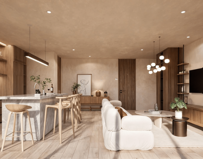Type B: 214 m2, 2 bedrooms, 2 baths, rooftop pool with second kitchen, ocean views, parking – IDR 5.750.000.000