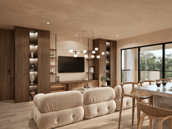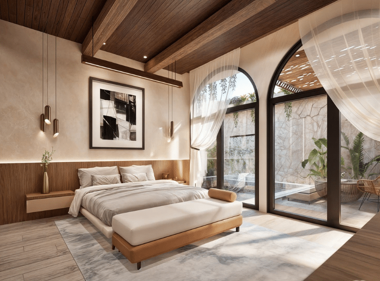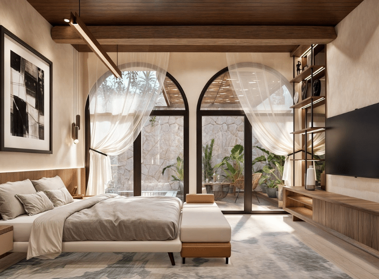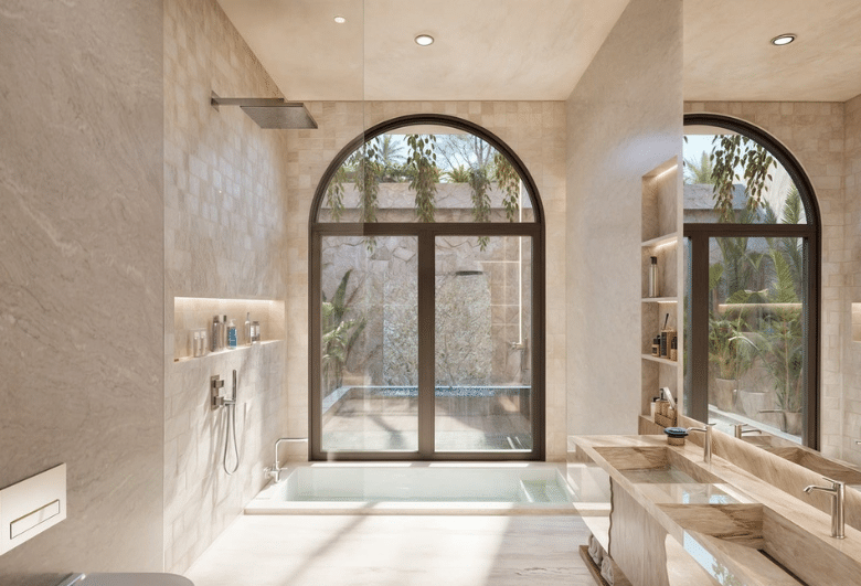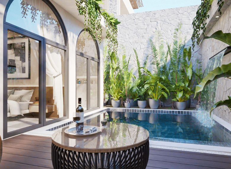 Type A: 85 m2, 2 bedrooms (2 master suites), 3 baths, private pool and patio, rooftop pool with second kitchen, ocean views, – IDR 3.970.000.000