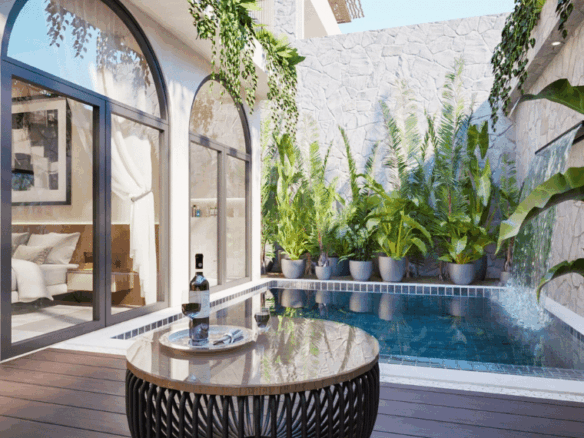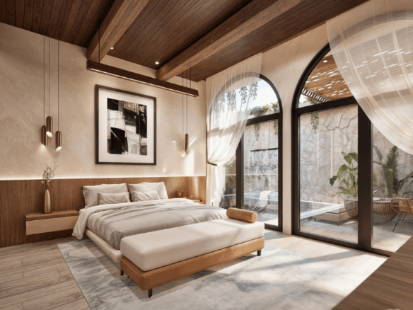 Type D: 295 m2, 4 bedrooms (2 master suites), 5 baths, private pool & patio, second rooftop pool with second kitchen, ocean views, – IDR 10.450.000.000