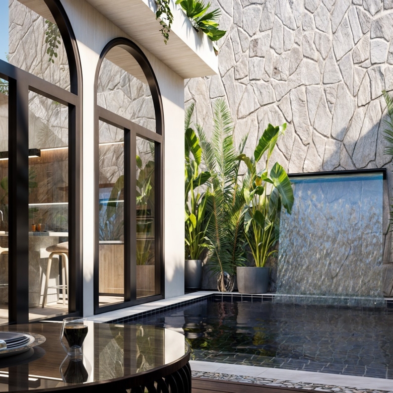 Type A: 85 m2, 2 bedrooms (2 master suites), 3 baths, private pool and patio, rooftop pool with second kitchen, ocean views, – IDR 3.970.000.000