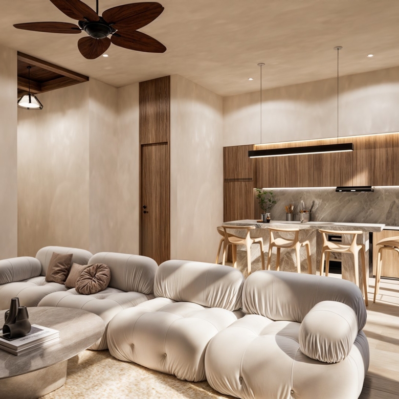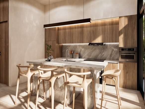 Type B: 214 m2, 2 bedrooms, 2 baths, rooftop pool with second kitchen, ocean views, parking – IDR 5.750.000.000