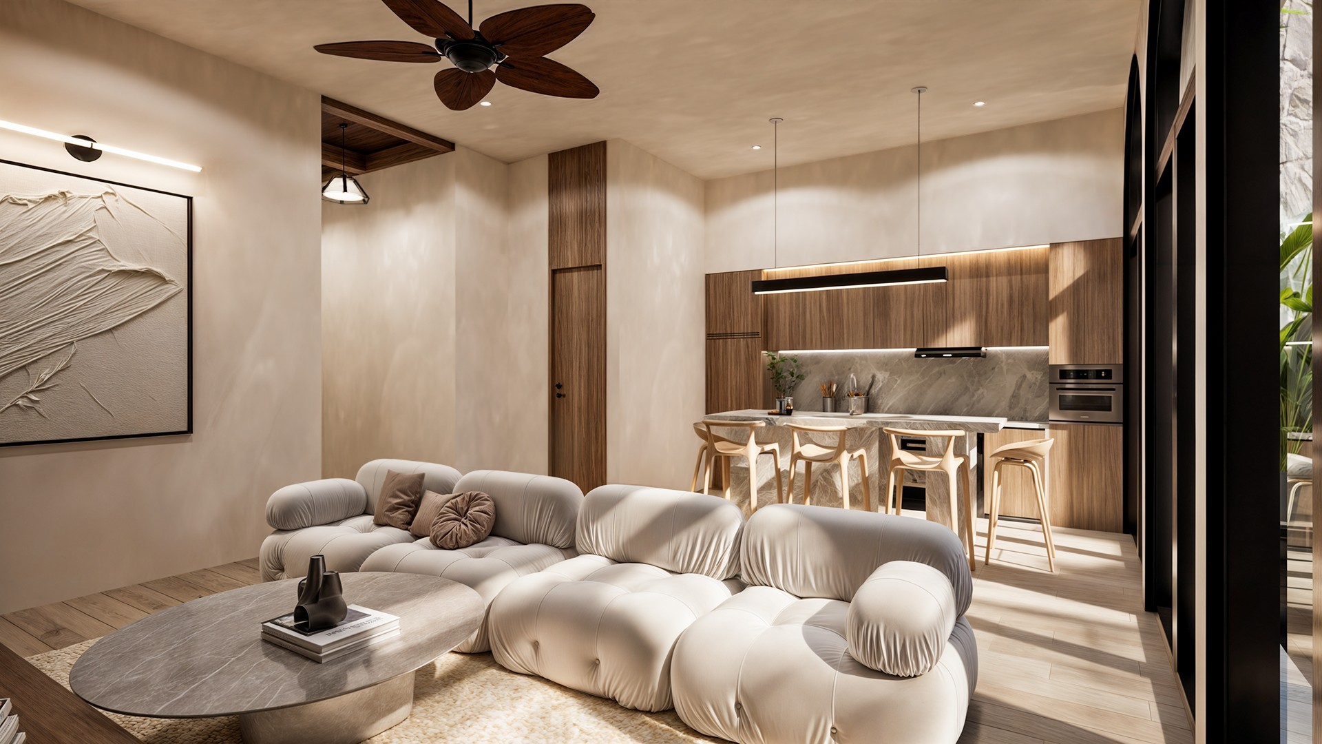 Type C: 295 m2, 3 bedrooms (2 master suites), 4 baths, private pool and patio, rooftop pool with second kitchen, ocean views, – IDR 9.650.000.000