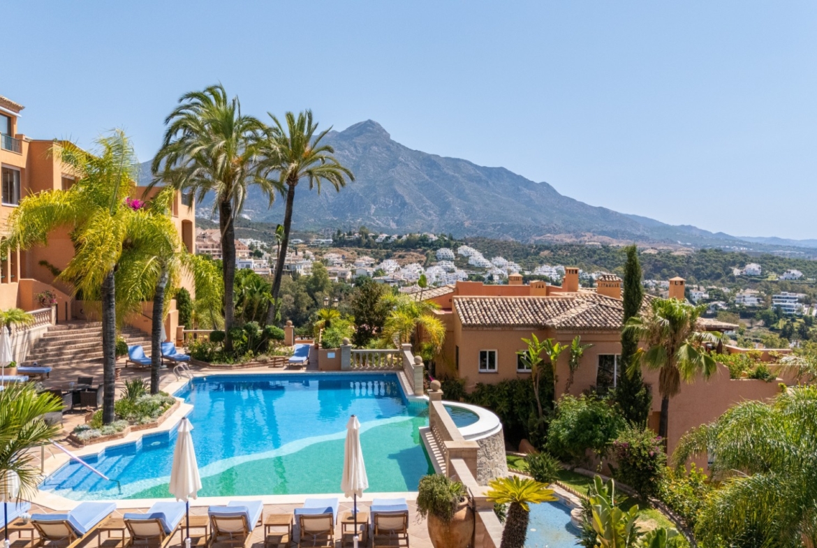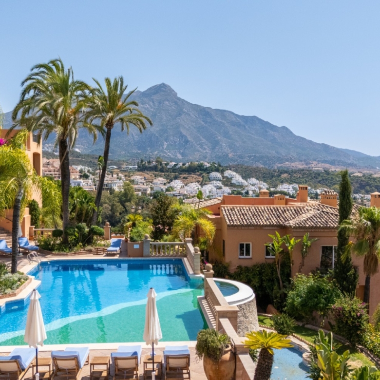 Les Belvederes is a prestigious gated community in La Cerquilla, Nueva Andalucía, offering breathtaking panoramic views of the Mediterranean Sea. This secure development features 24-hour security and resort-style amenities, including a large pool, gym, sauna, and tennis and padel courts.