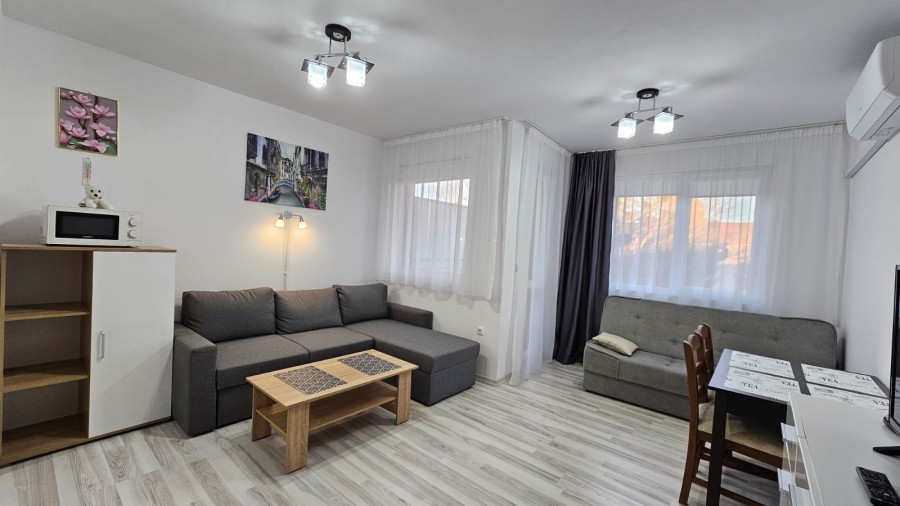 Modern studio, 40 sq.m., in Summer Park, Sunny beach, 500 m to the sea A spacious studio apartment is available for sale in the “Summer Park” complex in Sunny Beach with a low maintenance fee. The complex is located 500 meters from the beach, in a quiet area within walking distance of all city amenities. The complex features a swimming pool, recreation area, parking, and restricted access. Act 16 is in place, and separate meters for electricity and water are available. The 39.76 m2 studio apartment, located on the 4th floor, consists of a spacious living room with a kitchenette, a bathroom with a shower, and a cozy terrace overlooking the park. The apartment is brand new, fully furnished, equipped with appliances, and ready for comfortable occupancy, summer vacations, or rentals. The complex is located near the central part of the Sunny Beach resort, just 500 meters from the popular Cocoa Beach, in a green, park, quiet area, close to a diverse urban infrastructure with shops, restaurants, supermarkets, etc. There is ample parking on site and a swimming pool. – Super location, quiet, peaceful place next to a park area. – Private parking space for each apartment There is ACT 16. Maintenance fee: €260/year