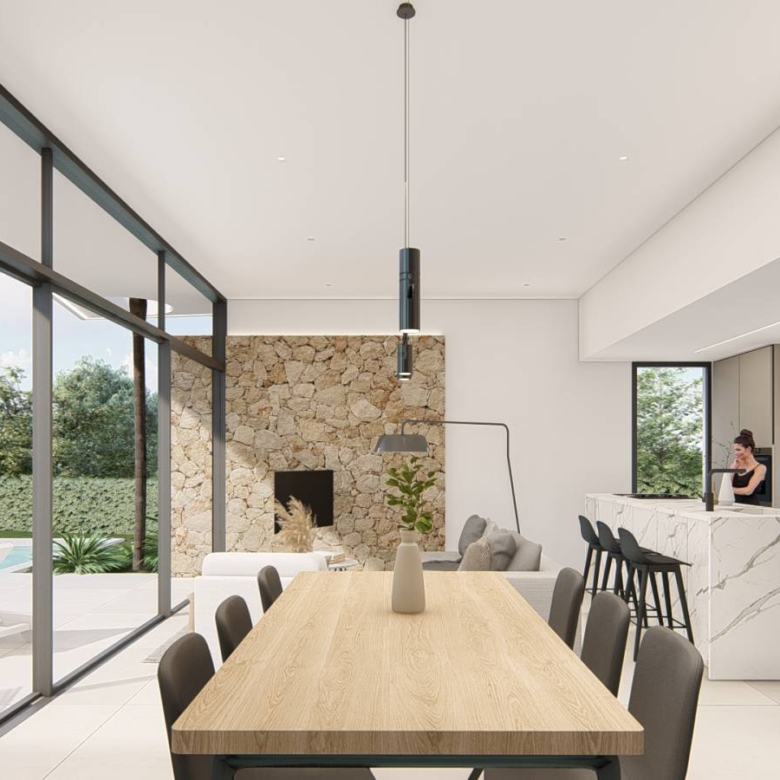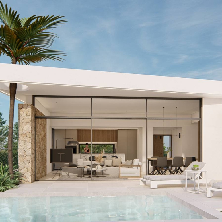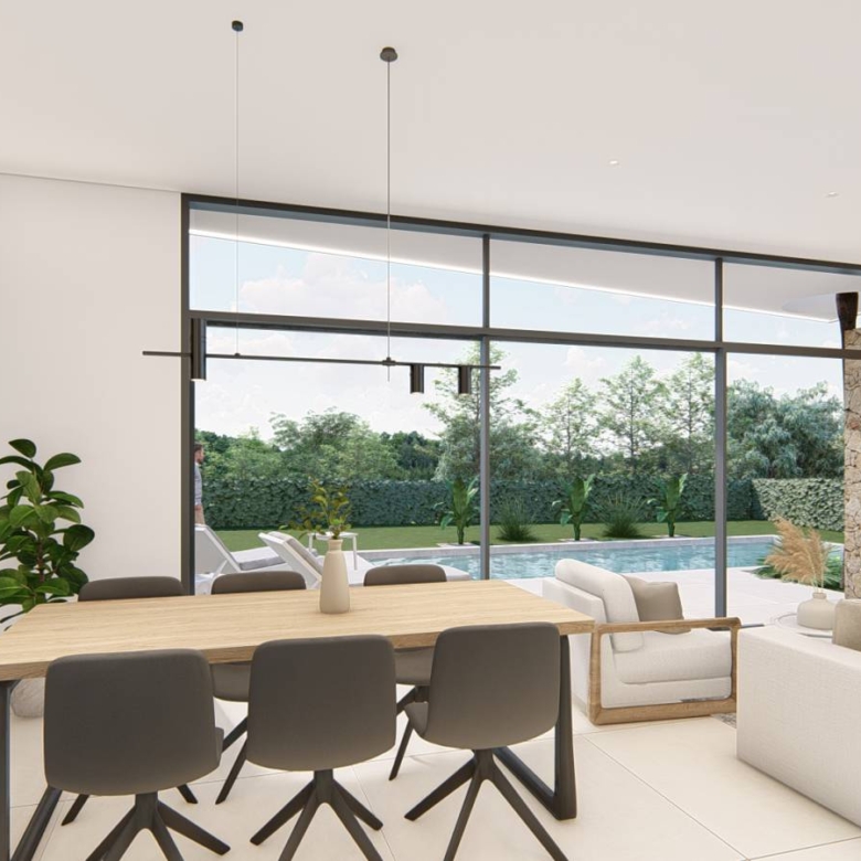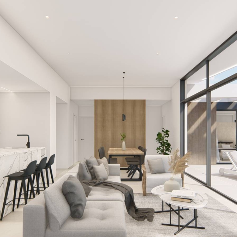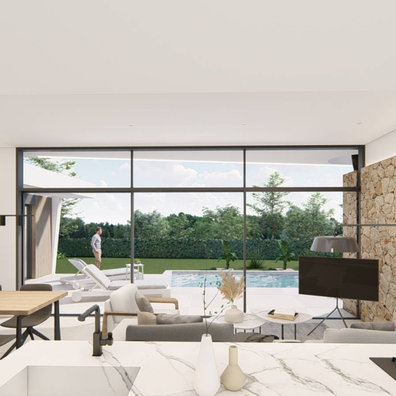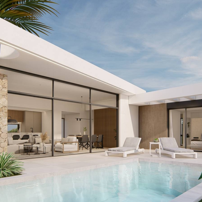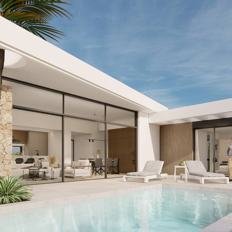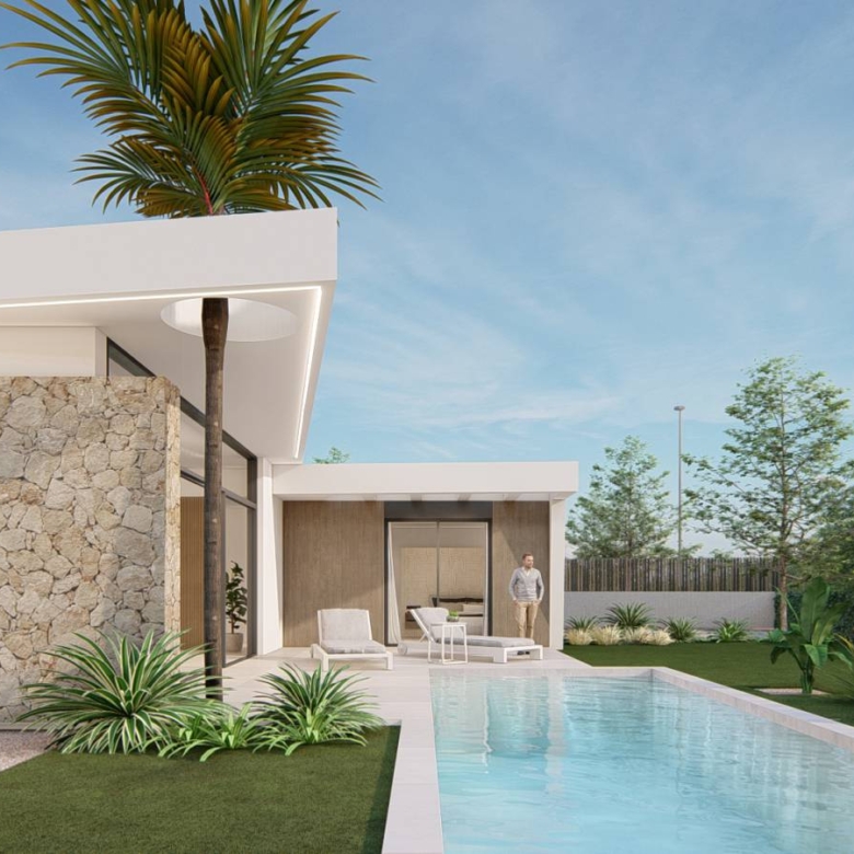 One floor villas in Molina de Segura, Murcia The properties have 3 bedrooms and 2 bathrooms, living-dining room, kitchen and private swimming pool of 8×3 metres with luxury finishes (natural stones, kitchen design 2023) situated in a perfect environment to enjoy the Spanish life and its climate all year round. The properties have pre-installation for air conditioning, fully fitted bathrooms, swimming pool with outdoor shower, white goods included, finished garden, interior lights, electric blinds, outdoor parking space. The private urbanization with 24h/7 security. Distances: Surroundings with lots of nature and mountains.Shopping centres at 11 km (IKEA, shops, supermarkets, restaurants)Supermarket at 350 mGolf course 7 kmWater park 12 km2 international schools less than 20 min drive awayMurcia city centre 14 kmBeaches of Murcia 45 min and Orihuela Costa 50 min awayMurcia airport 30 min and Alicante airport 45 min away Property ID: GH-307673-D Price: €535,000 Property Size: 138 m2 Land Area: 501 m2 Bedrooms: 3 Bathrooms: 2 Property Type: Villa Property Status: For Sale