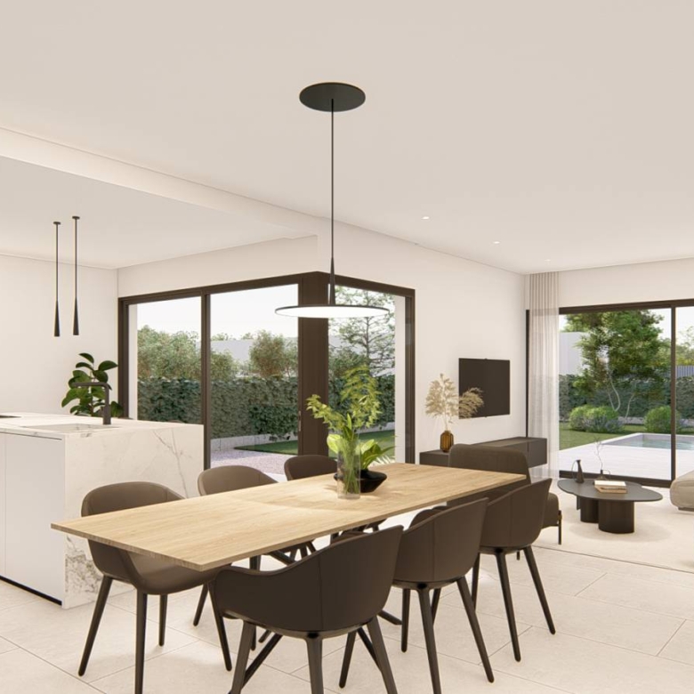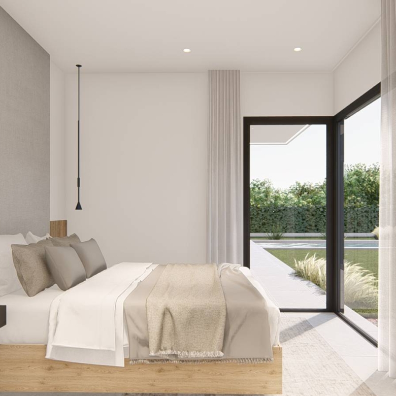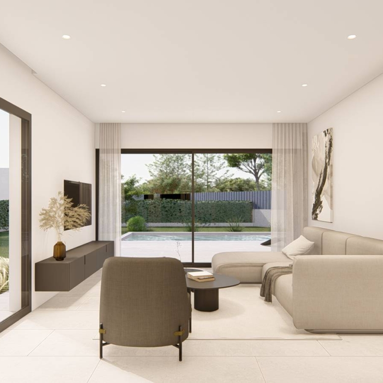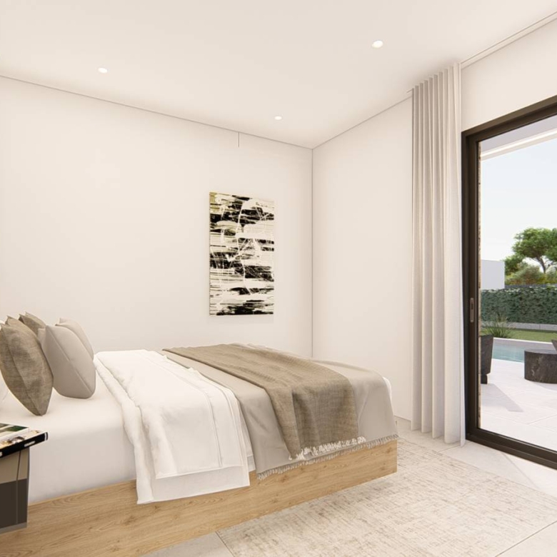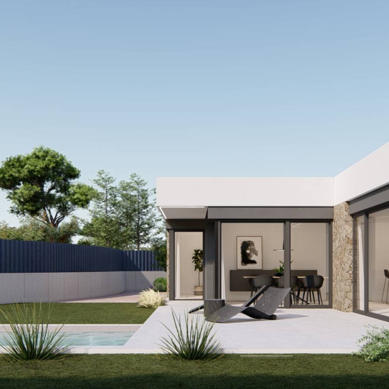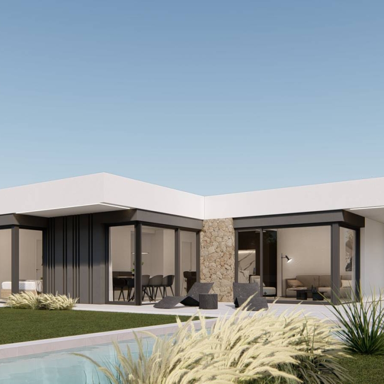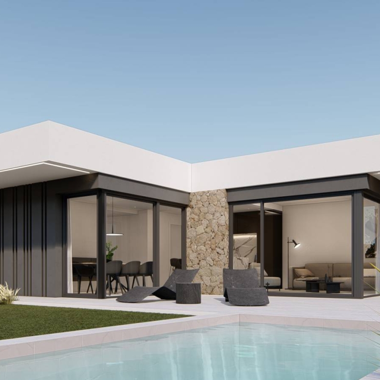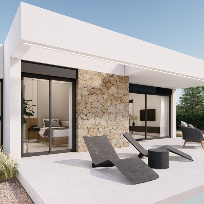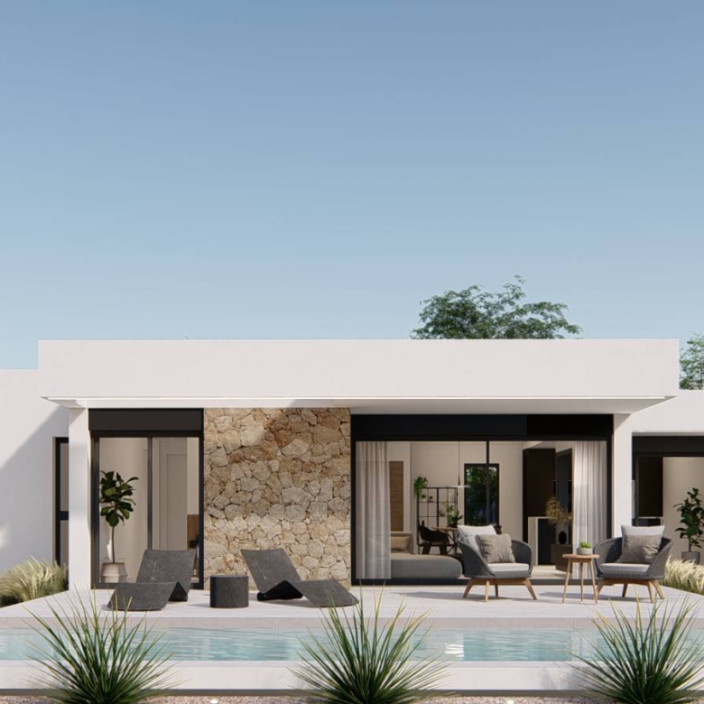 One floor villas in Molina de Segura, Murcia The properties have 3 bedrooms and 2 bathrooms, living-dining room, kitchen and private swimming pool of 8×3 metres with luxury finishes (natural stones, kitchen design 2023) situated in a perfect environment to enjoy the Spanish life and its climate all year round. The properties have pre-installation for air conditioning, fully fitted bathrooms, swimming pool with outdoor shower, white goods included, finished garden, interior lights, electric blinds, outdoor parking space. The private urbanization with 24h/7 security. Distances: Surroundings with lots of nature and mountains.Shopping centres at 11 km (IKEA, shops, supermarkets, restaurants)Supermarket at 350 mGolf course 7 kmWater park 12 km2 international schools less than 20 min drive awayMurcia city centre 14 kmBeaches of Murcia 45 min and Orihuela Costa 50 min awayMurcia airport 30 min and Alicante airport 45 min away Property ID: GH-307672-D Price: €469,000 Property Size: 134 m2 Land Area: 458 m2 Bedrooms: 3 Bathrooms: 2