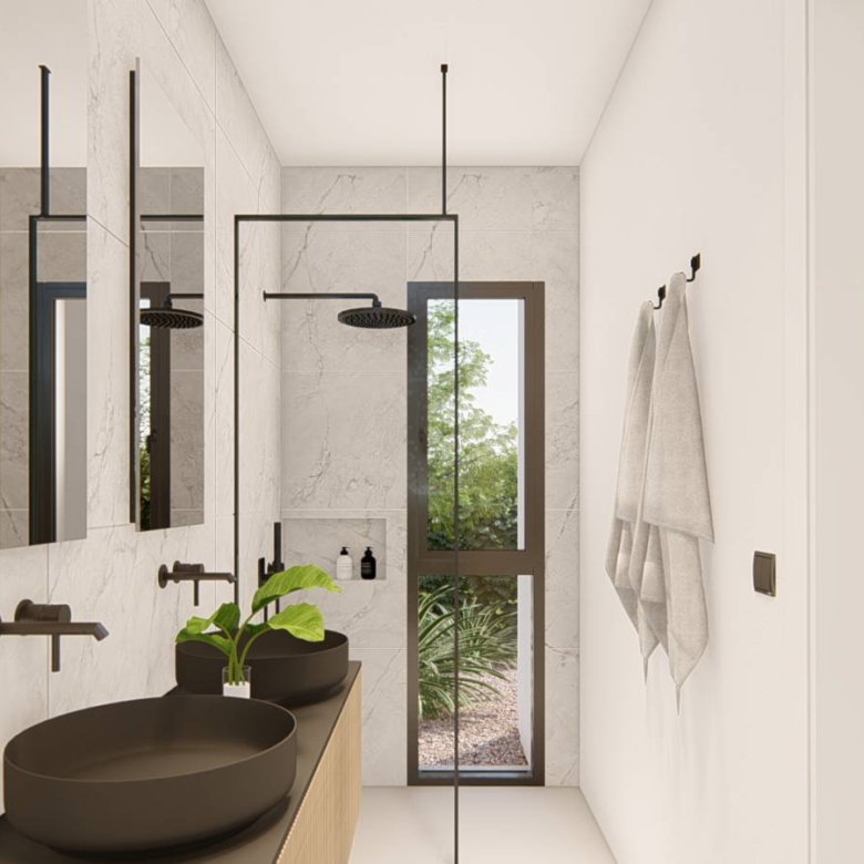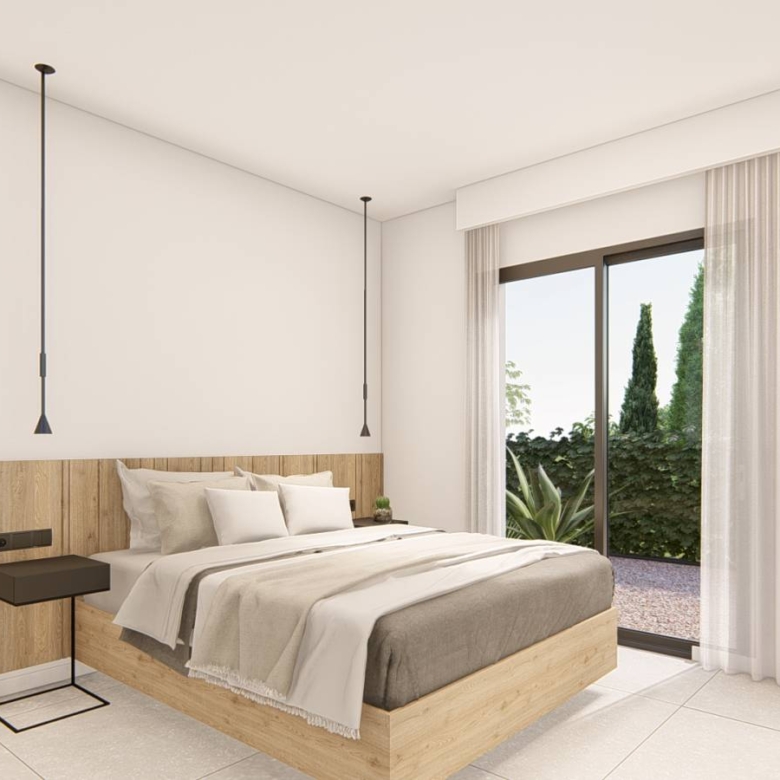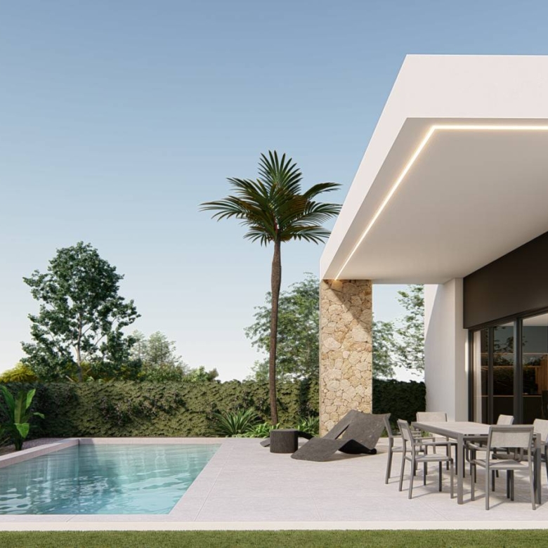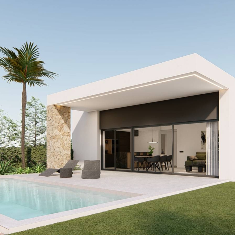 One floor villas in Molina de Segura, Murcia The properties have 3 bedrooms and 2 bathrooms, living-dining room, kitchen and private swimming pool of 8×3 metres with luxury finishes (natural stones, kitchen design 2023) situated in a perfect environment to enjoy the Spanish life and its climate all year round. The properties have pre-installation for air conditioning, fully fitted bathrooms, swimming pool with outdoor shower, white goods included, finished garden, interior lights, electric blinds, outdoor parking space. The private urbanization with 24h/7 security. Distances: Surroundings with lots of nature and mountains.Shopping centres at 11 km (IKEA, shops, supermarkets, restaurants)Supermarket at 350 mGolf course 7 kmWater park 12 km2 international schools less than 20 min drive awayMurcia city centre 14 kmBeaches of Murcia 45 min and Orihuela Costa 50 min awayMurcia airport 30 min and Alicante airport 45 min away Property ID: GH-307672 Price: €399,000 Property Size: 122 m2 Land Area: 306 m2 Bedrooms: 3 Bathrooms: 2 Property Type: Villa Property Status: For Sale
