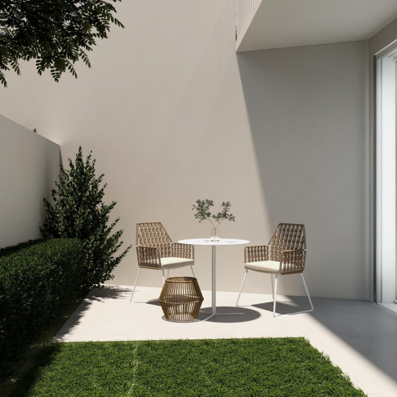 2 bedroom apartment, to Golden Visa, in the historical area of Montemor-o-Novo. Composed by two bedrooms, a bathroom, a kitchen in open space and a 39,05 sqm patio. The kitchen is fully equipped with household appliances and there is an optional package including furniture and a turnkey system project. It has unique features and a custom design that feature luxurious details from an architectural point of view. Under the bright colours of the central patio, you can write the next chapter of your own story. This apartment is inserted in the project ”Monte Amor”, integrated by a set of 5 apartments with garden. The project ”Monte Amor” is a good investment, not only for rental, but also for Golden Visa. Montemor-o-Novo is a historical city, located under the castle and represented by the harmonious fusion between the past and the present. A city where battles for nationality and freedom were fought, where heroes were born and left their mark on history. The settlement arises between the period of the Muslim occupation and the Christian reconquest, being the first news of its existence in 1181. D. Afonso Henriques reconquered this territory in 1160 and it was plundered and burned by the Moors in 1190. The nearest central city is Évora, being at a distance of 29 km, where there is the University and all sorts of services, including the central hospital, being a second hospital under construction. Porta da Frente Christie’s is a real estate agency that has been operating in the market for more than two decades. Its focus lays on the highest quality houses and developments, not only in the selling market, but also in the renting market. The company was elected by the prestigious brand Christie’s – one of the most reputable auctioneers, Art institutions and Real Estate of the world – to be represented in Portugal, in the areas of Lisbon, Cascais, Oeiras, Sintra and Alentejo. The main purpose of Porta da Frente Christie’s is to offer a top-notch service to our customers. Property ID: PDF-PF30389 Price: €308,000 Property Size: 99.0 m2 Bedrooms: 2 Bathrooms: 2 Property Type: Apartment Property Status: For Sale