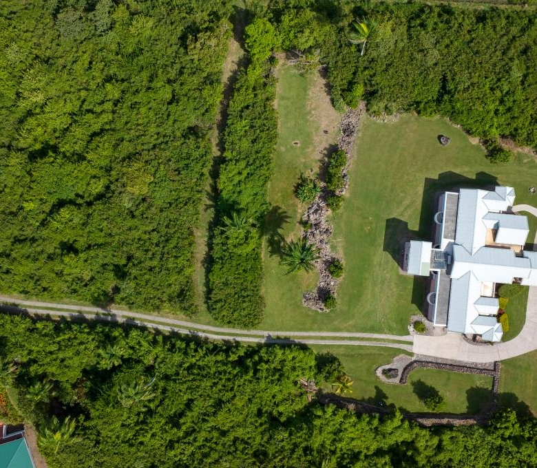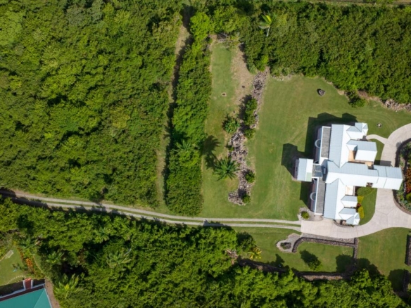 Morning Star Manor is ideally situated in a serene and highly private area on the Western quadrant of Nevis, positioned at an elevation of 800 feet. This privileged location ensures consistent cooling breezes and provides unobstructed panoramic views that sweep across the sparkling Caribbean Sea, transitioning into the lush, rolling green hills of the island, which gracefully merge with the distant horizon. The property itself is accessed via a private, two-lane concrete track road, leading to a handful of other secluded estates, guaranteeing exceptional privacy and a peaceful atmosphere that allows residents to fully immerse themselves in the tranquility of the surroundings.