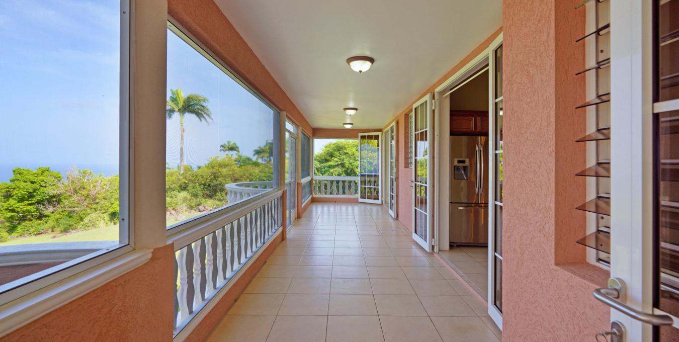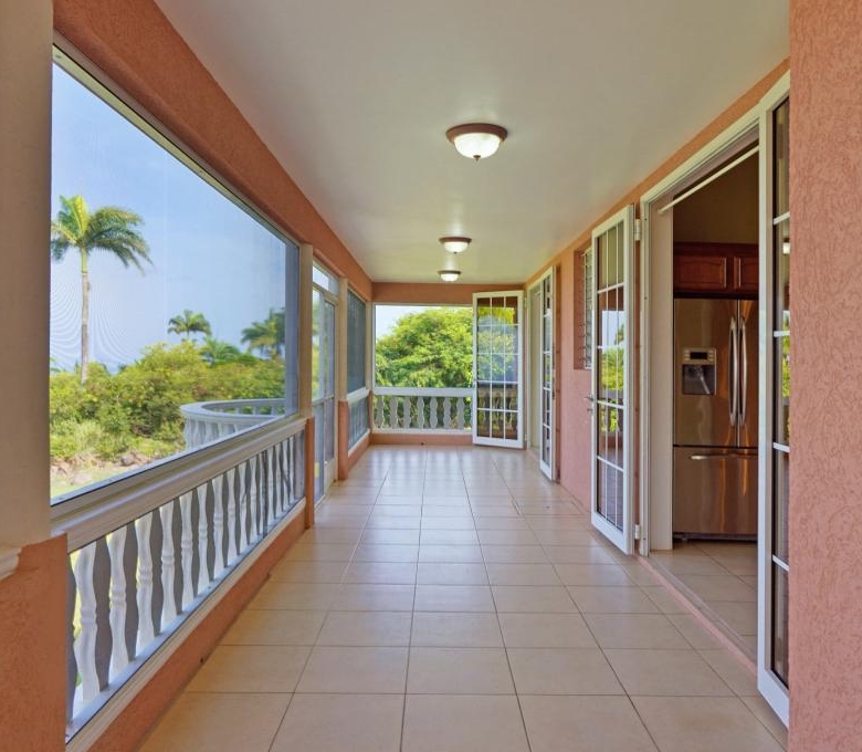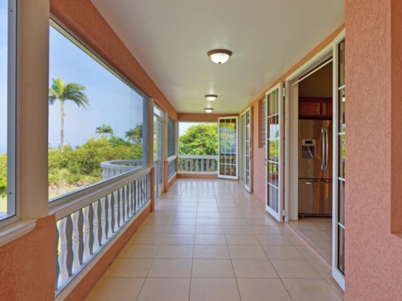 The exterior of Morning Star Manor is just as captivating as its interior. The South-West facing side of the house features one long, inviting screened veranda, offering multiple access points from three of the main bedrooms, the kitchen, and the living room. A section of this veranda thoughtfully extends outwards, presenting the most breathtaking, unobstructed views over the gently sloping landscape, the pristine shoreline, and the endless Caribbean Sea – a perfect setting for relaxing, dining, or simply soaking in the idyllic surroundings.