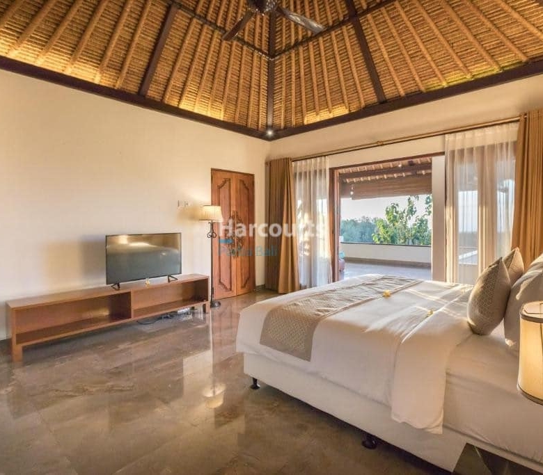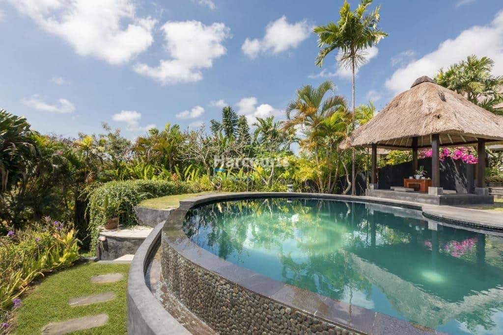 Resting within an exclusive residential community in a peaceful area just 10 minutes from the white sands and surf of Balangan Beach, this charming hilltop villa enjoys a well-designed 294 sqm of living space on 750 sqm of FREEHOLD land.The property showcases the traditional Bali-style combined with modern, practical features. There are 3 fully furnished king-sized bedrooms at the villa, all with en-suite bathrooms. The property also has a Western standard kitchen, complemented by indoor and outdoor dining areas, complete with a stunning upper level lounge blessed with magnificent ocean views. A private pool is set amidst manicured gardens.An ideal family residence overlooking the indian Ocean in a most appealing location – this tasteful villa is a short drive to restaurants, shops and picturesque white sand beaches of the Bukit Peninsula, and just 20 minutes from the airport.Nearby: Nirmala Supermarket 500 m, GWK 1 km, Side Walk Jimbaran 1.1 km, New Kuta Golf 2.8 km, Balangan Beach 3.8 km