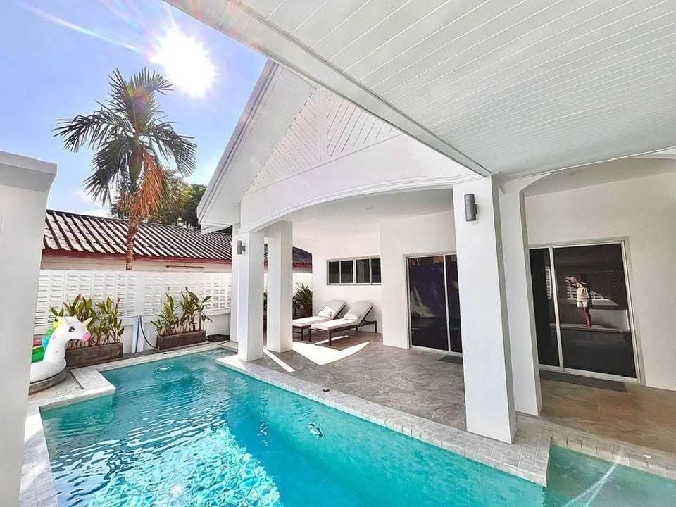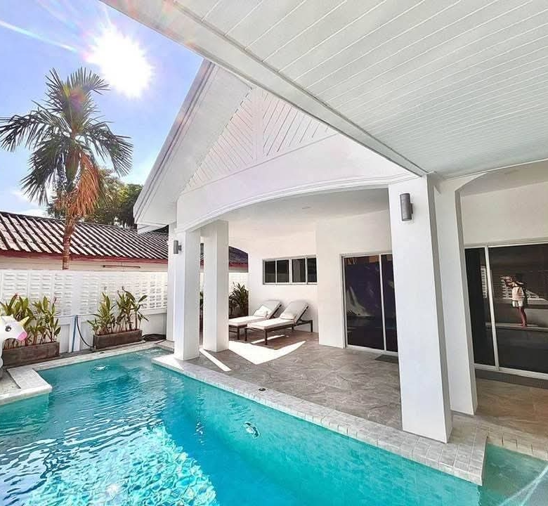 This beautifully upgraded Nai Harn villa for sale offers 4 spacious bedrooms, 3 bathrooms, and a stunning private pool—perfect for families, retirees, or investors seeking a ready-to-move-in property in southern Phuket. Located just a short walk from Nai Harn Lake and Nai Harn Beach, this tropical home sits on a generous 450 sqm land plot and is set in a quiet, friendly neighborhood. It combines modern design with practical living, all within one of Phuket’s most desirable residential zones. Property Highlights 4 spacious bedrooms with built-in wardrobes 3 bathrooms, including a luxurious master bath with deep tub 2 large living areas with high ceilings and great airflow Fully fitted Western kitchen with premium appliances and island Open-plan layout with natural light throughout Fully air-conditioned with 6 split A/C units Smart home-ready with 95” and 55” HD Smart TVs Brand-new front-load washer and dryer Turnkey condition – move in or rent out immediately Outdoor Living & Pool Area The Nai Harn villa for sale includes a modern private pool with spa seating, shallow and deep ends, and built-in night lighting. Surrounded by a tropical garden and sun loungers, the outdoor area is ideal for entertaining or family relaxation. A covered terrace, outdoor shower, and shaded seating provide an effortless indoor-outdoor living experience. Ownership & Pricing Details Asking Price: THB 11,500,000 Ownership: Freehold via Thai Company (easy transfer) Land Size: 450 sqm | Usable Area: 350+ sqm Common Fee: None (no estate) Prime Location – Nai Harn, South Phuket This villa for sale in Nai Harn is just: 5 minutes from Nai Harn Beach 50 meters from convenience stores (7-Eleven) 10 minutes to Rawai and Chalong 15–20 minutes to international schools and hospitals Approx. 1 hour to Phuket International Airport Investment Potential: This Nai Harn villa for sale is positioned to generate strong returns. Whether as a long-term residence or short-term rental, its location, renovation quality, and turnkey setup make it highly desirable. Foreign buyers will appreciate the clean company ownership for easy transfer. Contact ThaiEstate today to arrange a private viewing or request more information. Don’t miss this rare opportunity to own a renovated pool villa in one of Phuket’s most sought-after areas.