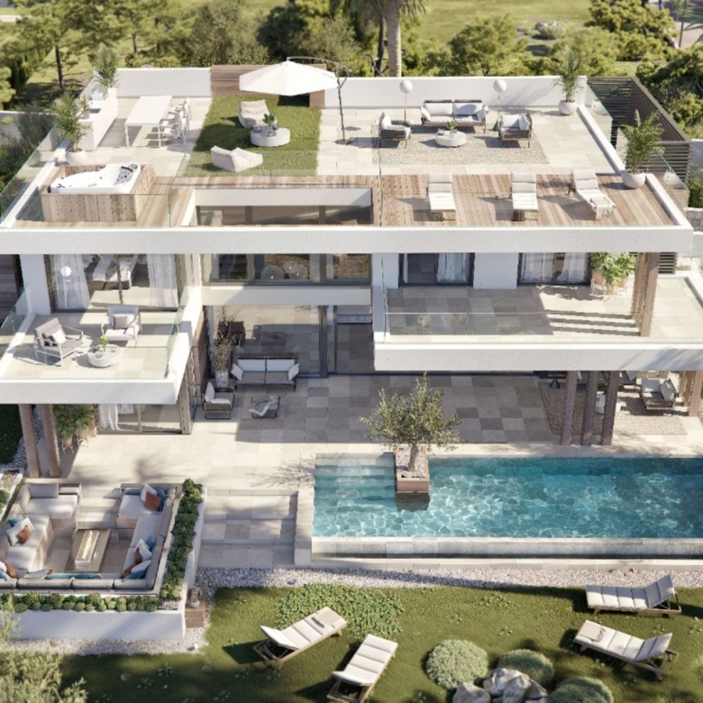 New Development: Prices from €1,833,000 to €2,330,000. [Bedrooms: 4] [Bathrooms: 4] [Built size: 1353m2].Located in Norte Cancelada, Estepona, THE ViLLAS, of elegant concept with avantgarde design for lovers of the full life. A charming atmosphere accompanied by beautiful sunsets which, combined with the natural elements of the design, create a dream villa. inspired by the serenity of a natural environment, surrounded by mountains and sea, select villas that redefine the concept of lifestyle on the Costa del Sol.Elegant design with natural charm embodied in this dream villa of 4 bedrooms, 4 bathrooms and 1 toilet. South orientation with sea views and located next to Villa Padierna Palace Hotel and its golf courses.