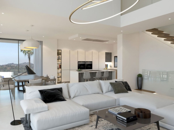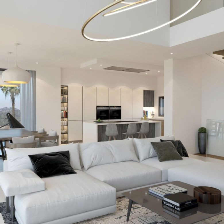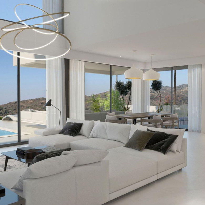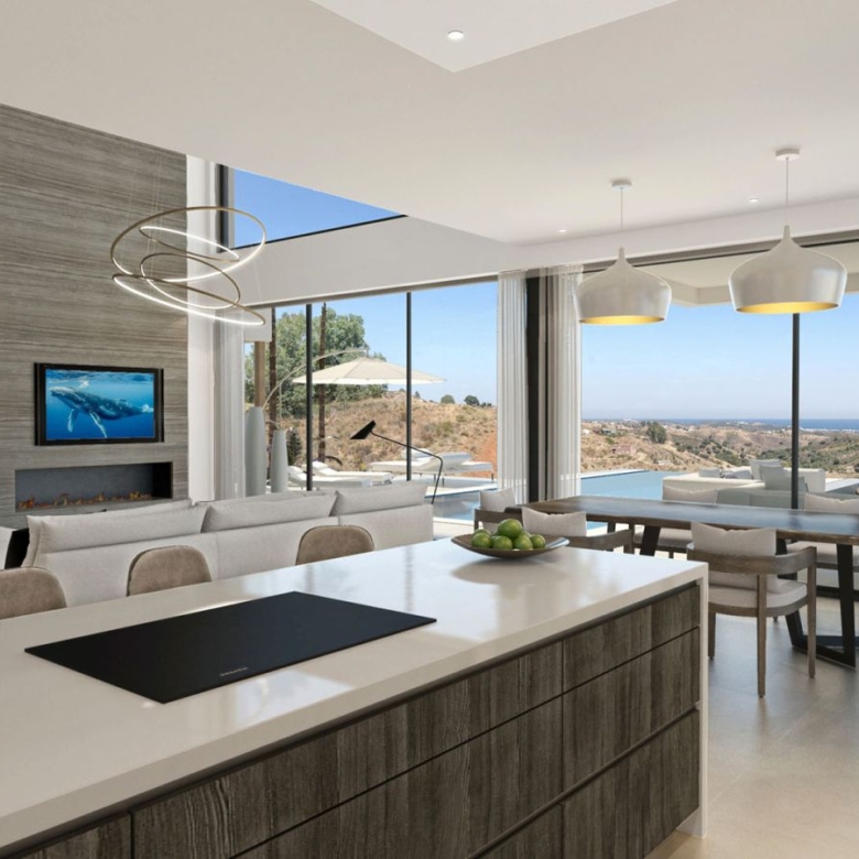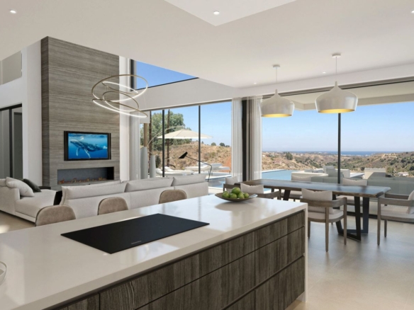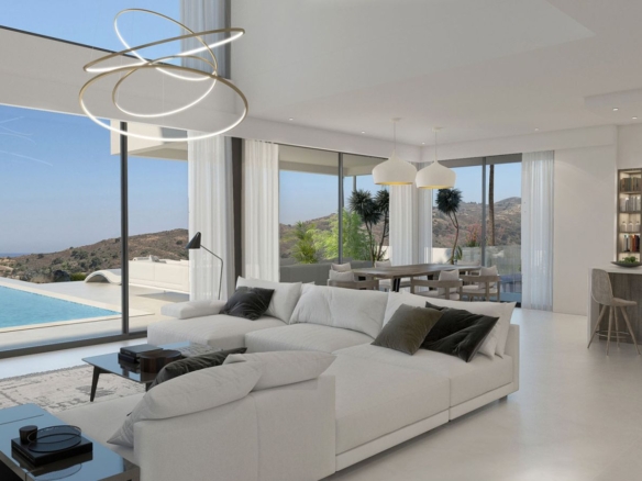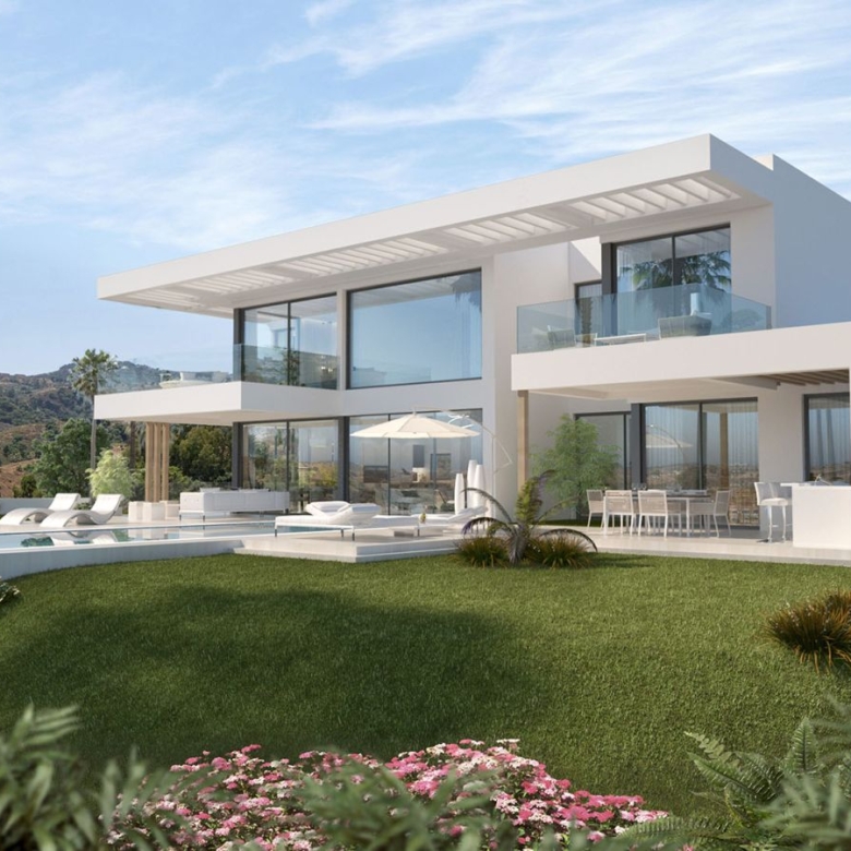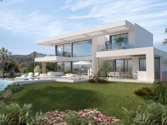 New Development: Prices from €1,895,000 to €1,895,000. [Bedrooms: 5] [Bathrooms: 4] [Built size: 1808m2].This villa is an ultra-modern luxury villa in La Cala Golf, one of the most beautiful and attractive locations on the Costa del Sol – La Cala Golf Resort in La Cala de Mijas. it is just 10 minutes from the beach, 20 minutes from Marbella and 30 minutes from Malaga Airport.The villa is standing on a large plot of 1474m2. Thanks to its hilltop location it offers complete privacy and panoramic stunning views over the green hills of La Cala de Mijas and the Mediterranean Sea. The villa has a perfect south orientation.This villa in La Cala Golf is distributed over 3 floors and has 5 bedrooms and 4 bathrooms. The spacious open-plan interiors with large windows, that are leading to the large terraces outside, have been specifically designed to offer a choice of sunny and shadow areas all day long and in every season.On the ground floor there is a spacious living room with double-height ceiling and panoramic windows, cosy open fireplace, an open-plan kitchen, fully equipped with top brand appliances, a guest toilet and 2 guest bedrooms with a shared bathroom.On the first floor there is a master bedroom with an en-suite bathroom and a spacious walk-in dressing room that has a spectacular terrace with views over the green hills of Mijas and the Mediterranean Sea. There is also an additional guest bedroom with an en-suite bathroom and a private terrace overlooking the sea.in the basement level there is a laundry room, a guest bedroom with an en-suite bathroom and a multifunctional room that can be used as a gym, home cinema theatre, wine cellar, etc. These rooms can also be transformed into an individual apartment if necessary. The garage offers parking space for 2 cars.The indoor space of the villa seamlessly connects with the outdoors thanks to the large covered and uncovered terraces and the beautifully landscaped garden with the infinity swimming pool that offer an oasis of complete peace and tranquillity with impressive views over the countryside and the Mediterranean Sea.Waking up in this luxury villa in La Cala Golf will undoubtedly give you the feeling that the whole world is at your feet. Enjoy the diversity the Costa del Sol has to offer with the maximum comfort and well-being that you deserve.